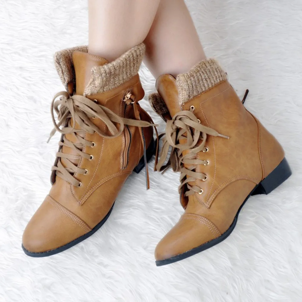 ASHIOFU Handmade Vintage Ladies Low-heel Boots Lace-up Party Prom Winter Ankle Boots Large Size Evening Western Fashion Boots