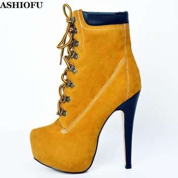 ASHIOFU Handmade Women’s High Heel Boots Knee Boots Platform Winter Boots