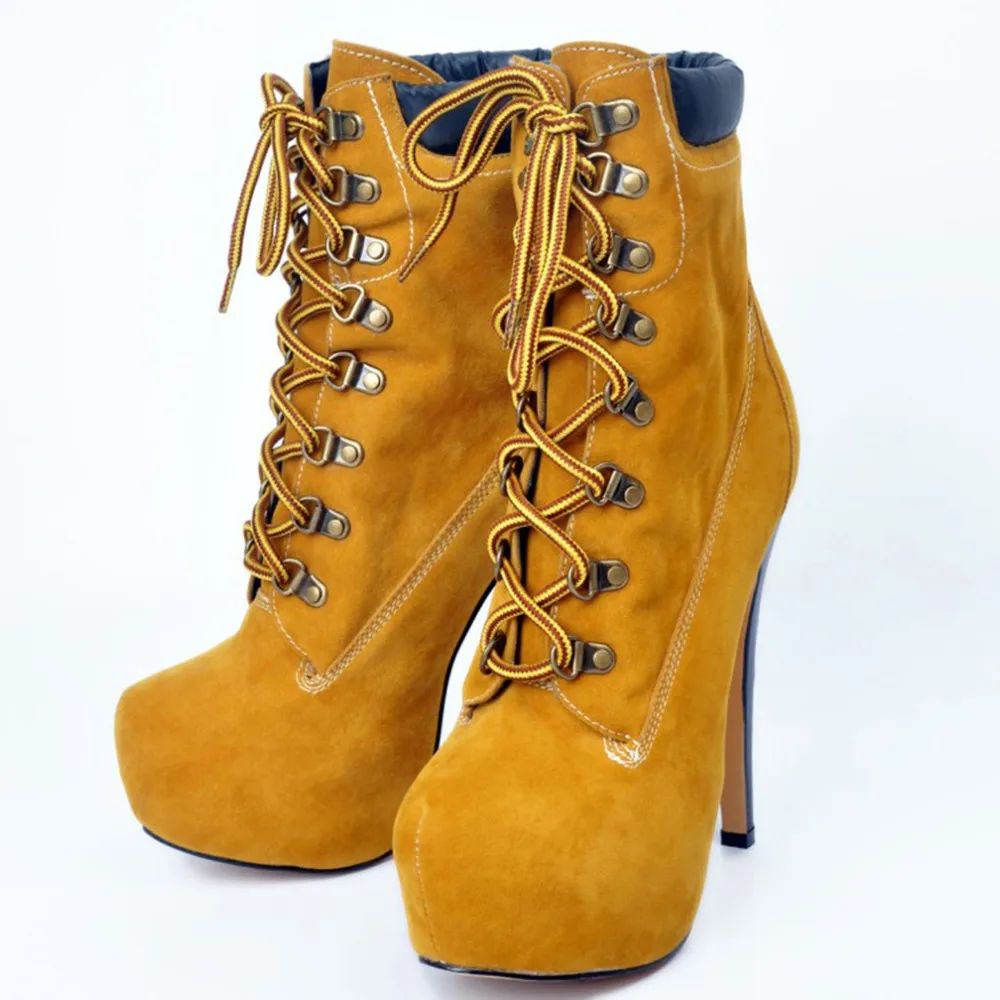 ASHIOFU New Wholesale Women’s High Heel Boots Lace-up Platform Party Prom Ankle Boots Winter Evening Fashion Short Boots XD154