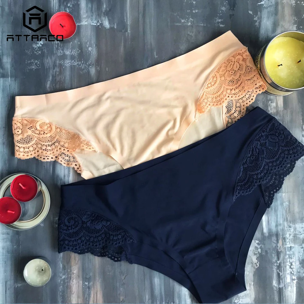 Attraco Original Women Lace Hipster Underwear V-String Pantie Briefs Cotton 4 Pcs Tanga Thong Lace Edge Breathable Stretch