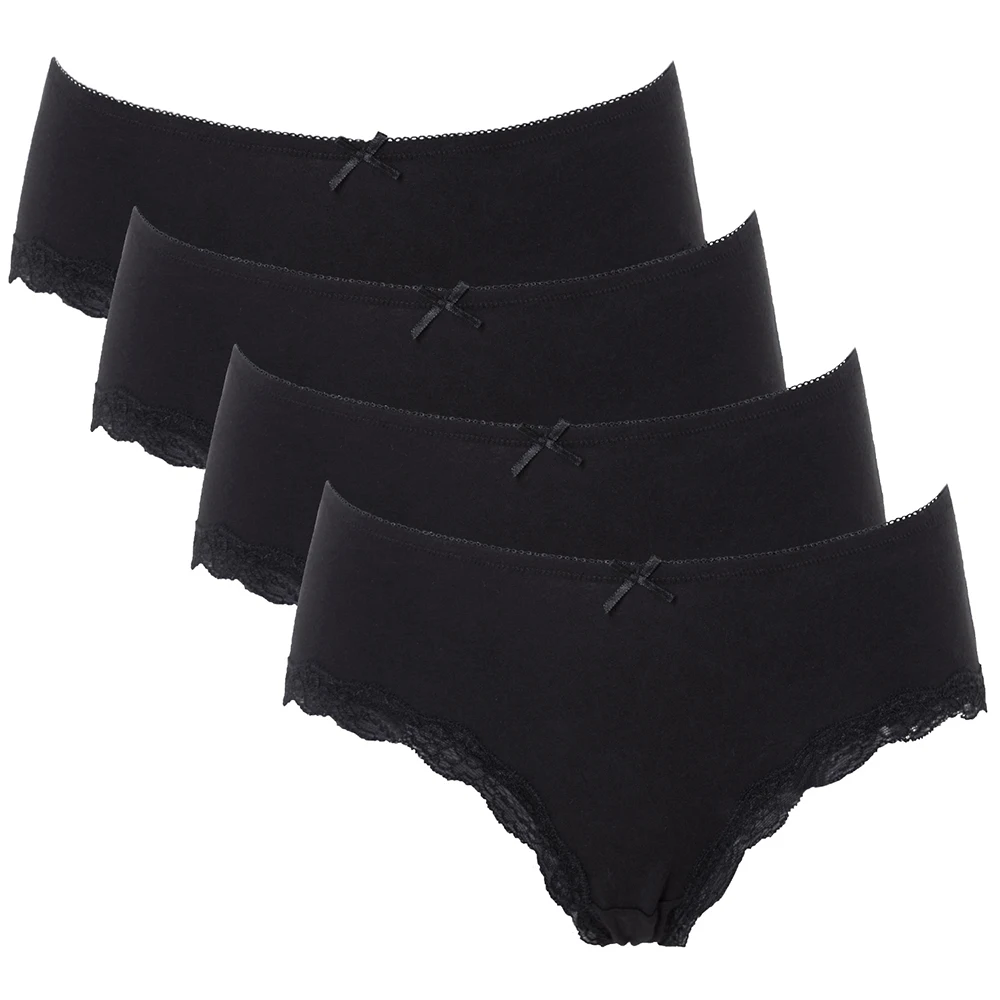 Attraco Original Women Underwear Pantie Hipster 4 Pcs Cotton Soft Strech comfort solid Ladies Bow tie Mid-waist трусы женские