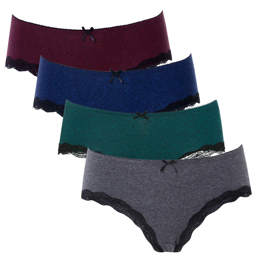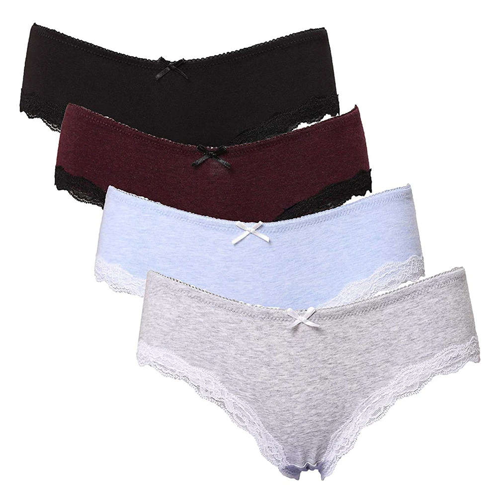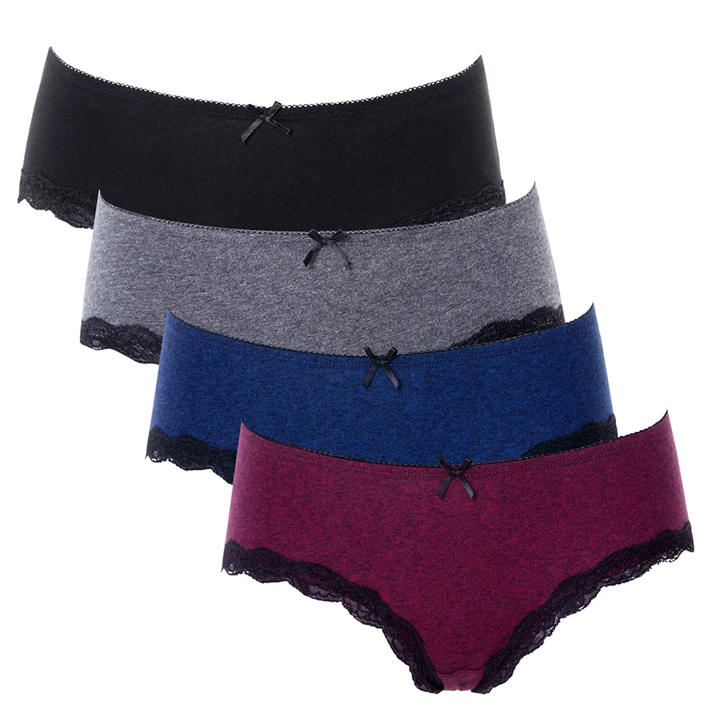 ATTRACO Women Underwear 4 Packs Cotton Soft Strech Hipster comfort solid Panties Ladies Bow tie mid waist hot sale cozy