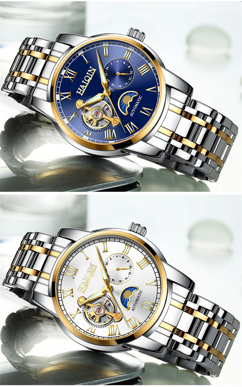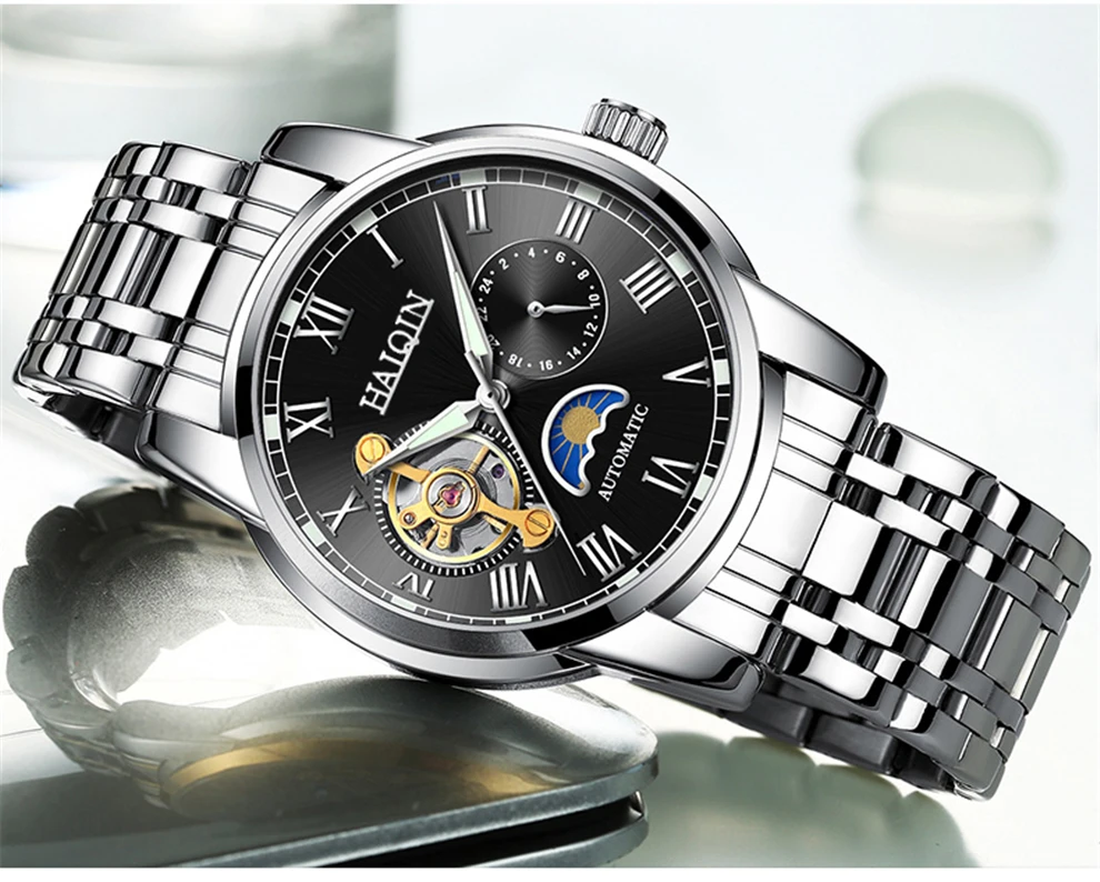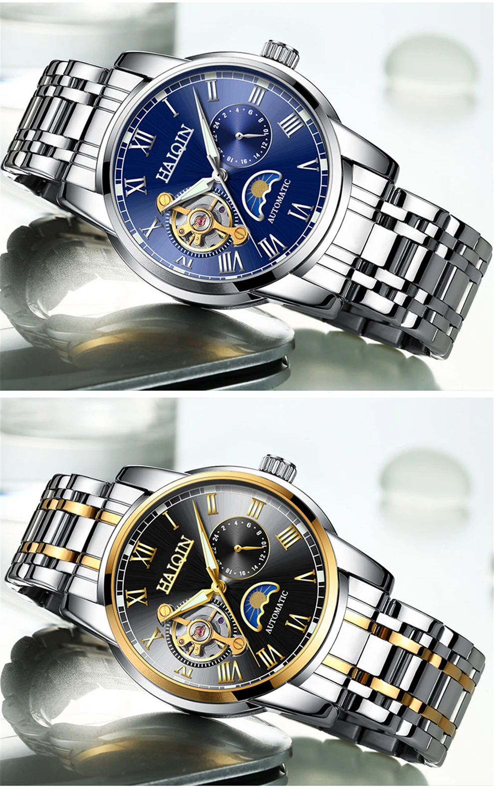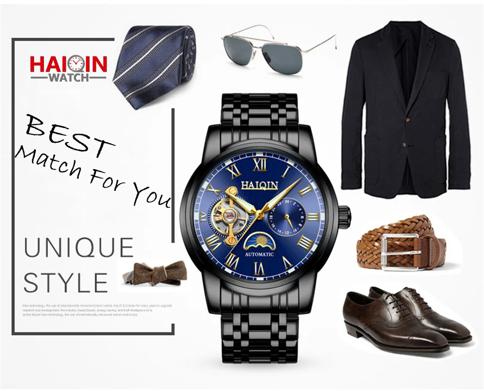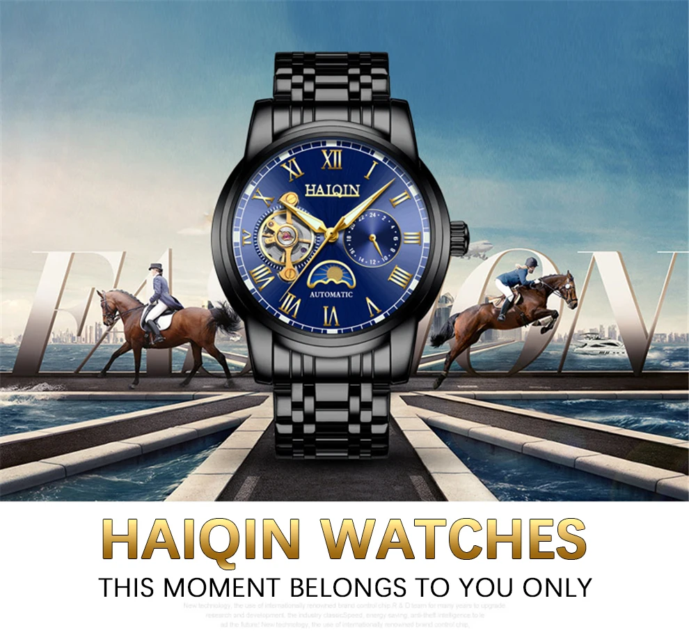 Automatic Machinery Men’s watches HAIQIN New top luxury brand watch men business steel clock men moon watch reloj hombre