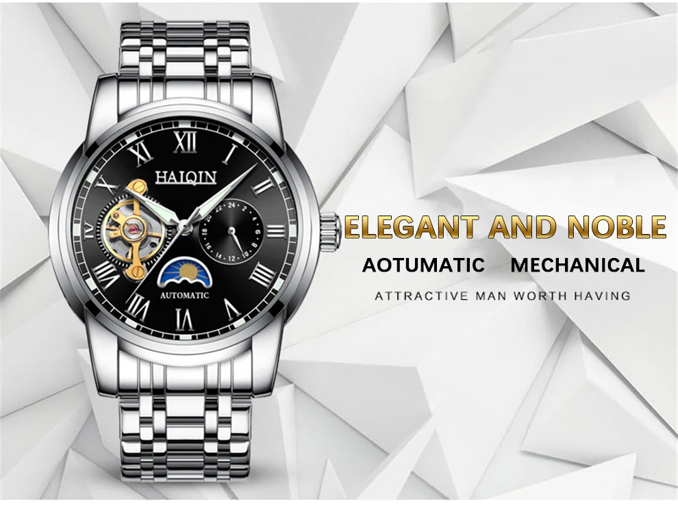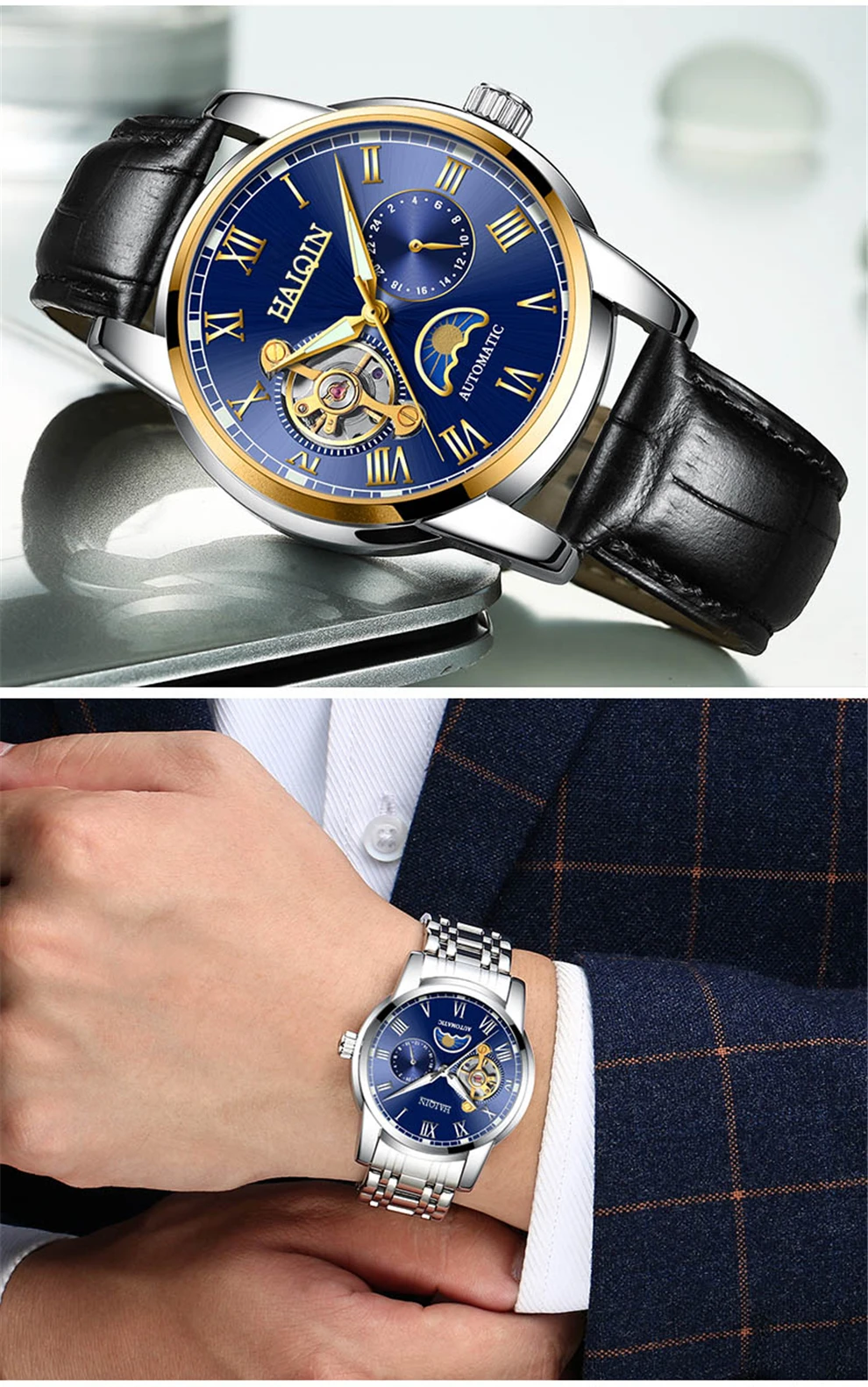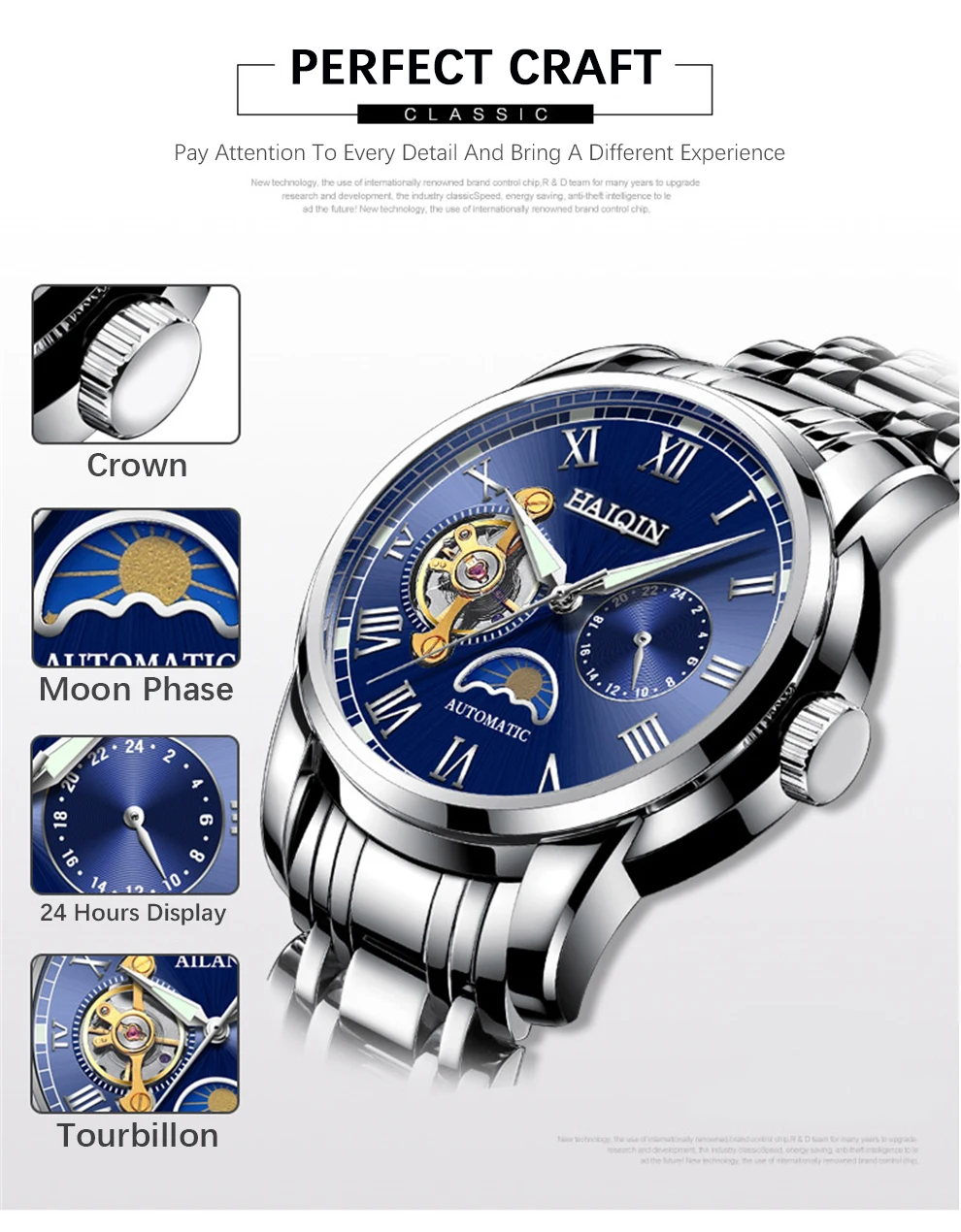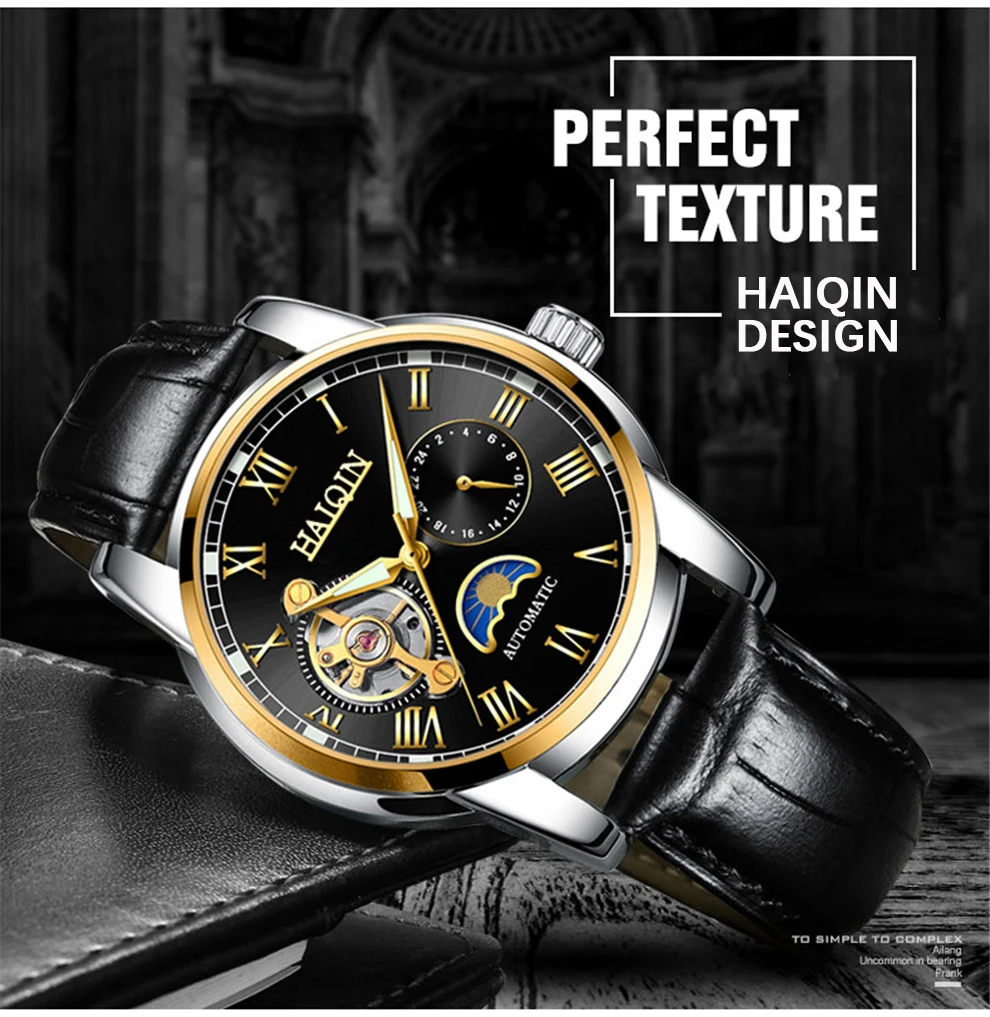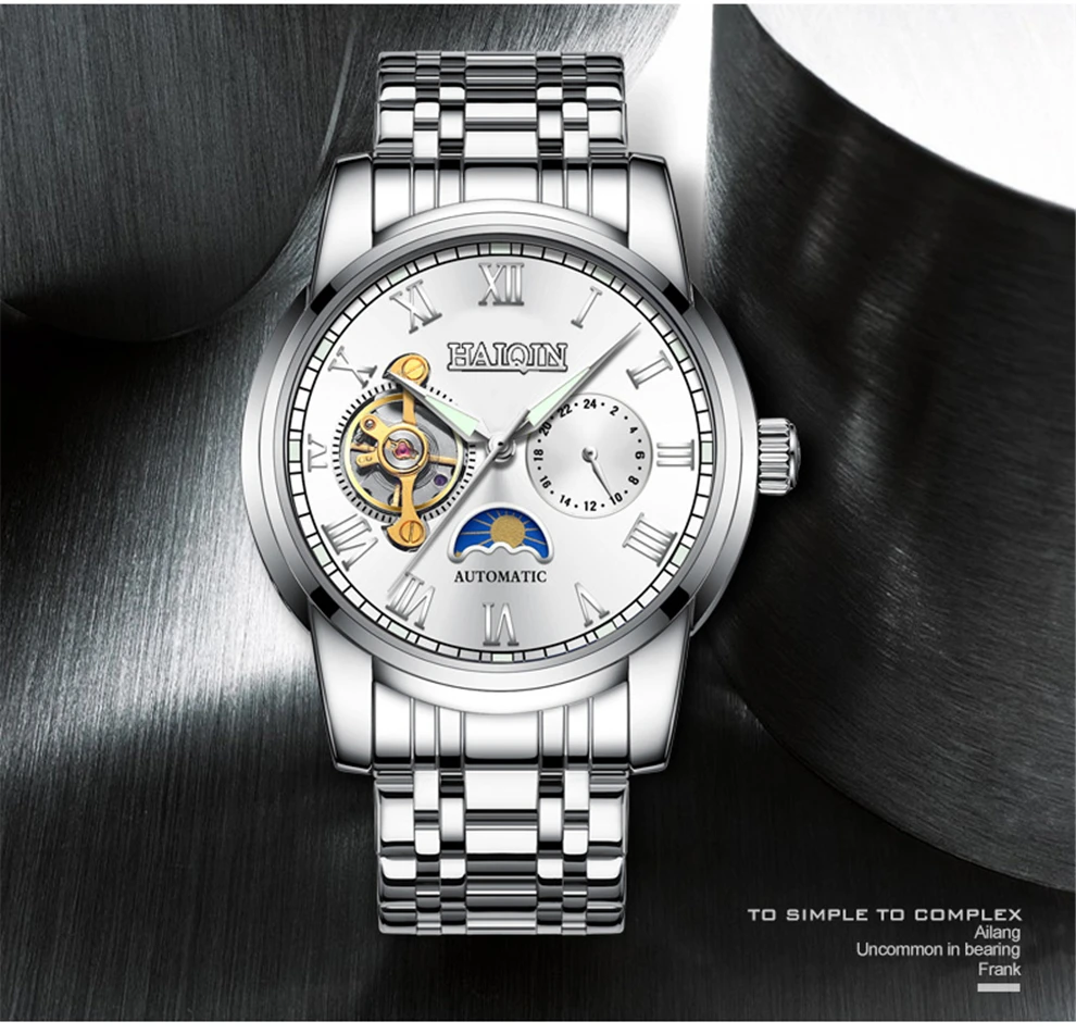 Automatic Machinery Men’s watches HAIQIN New top luxury brand watch men business steel clock men moon watch reloj hombre