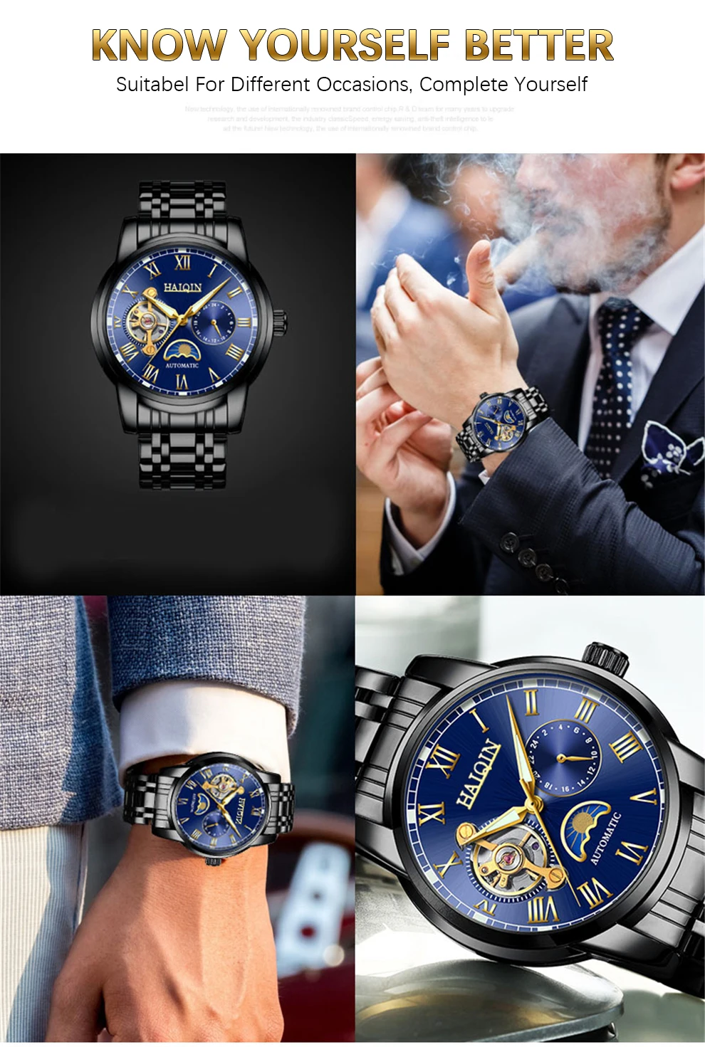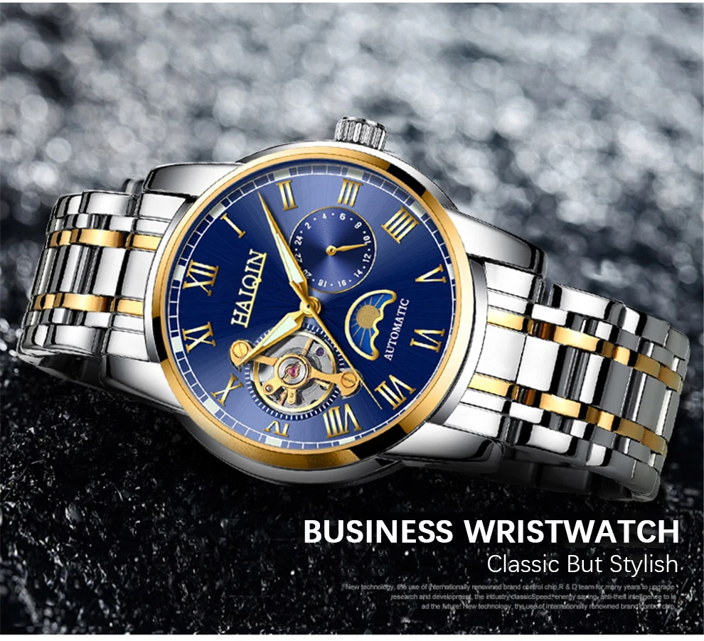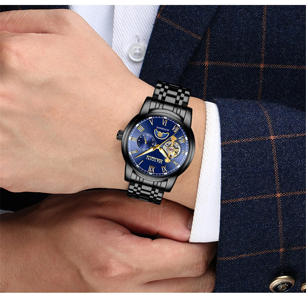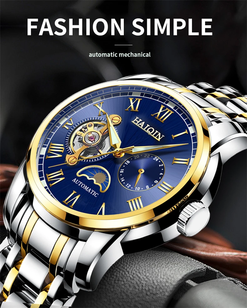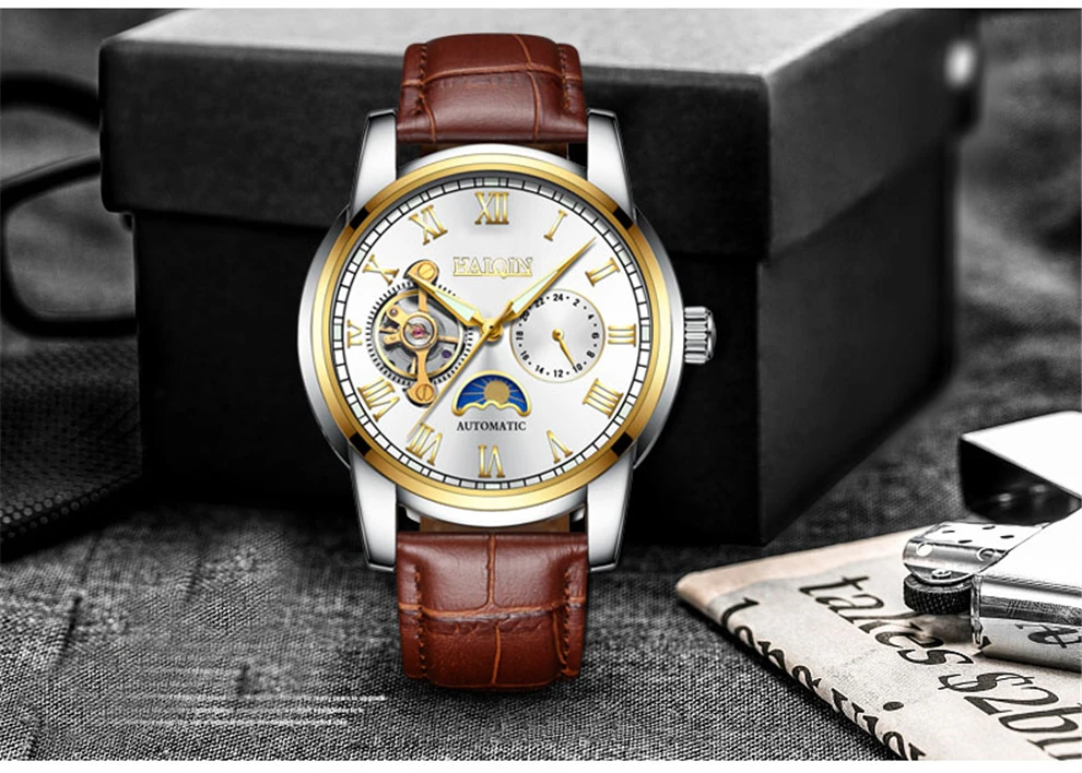 Automatic Machinery Men’s watches HAIQIN New top luxury brand watch men business steel clock men moon watch reloj hombre