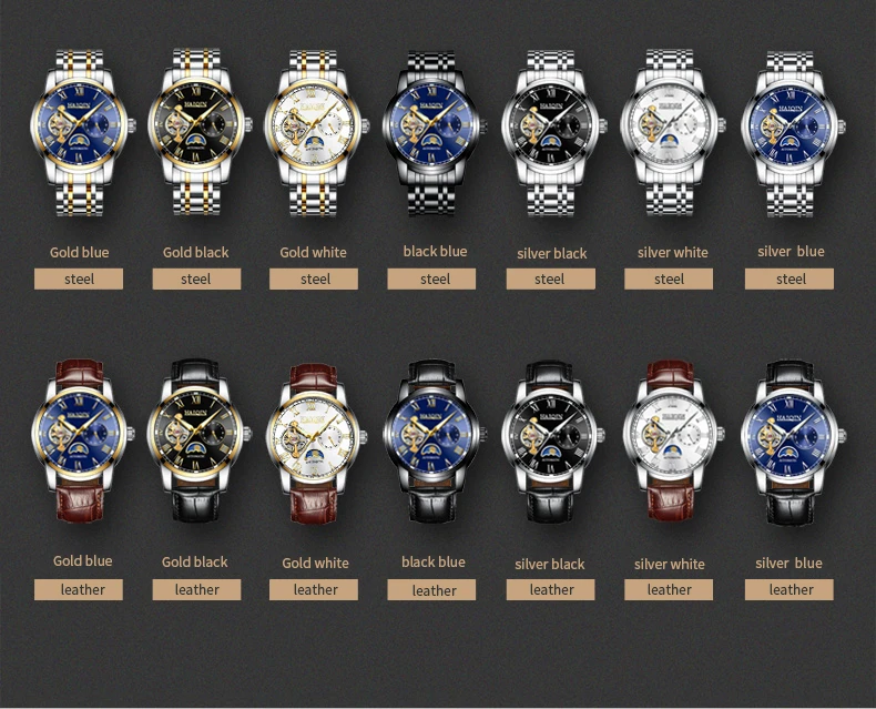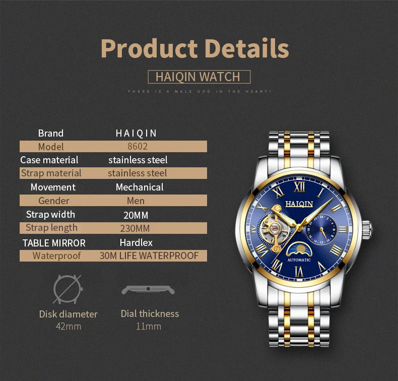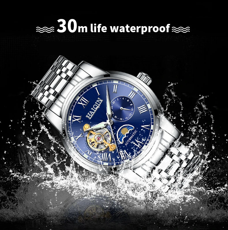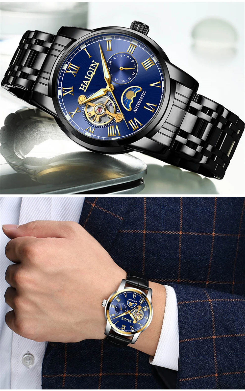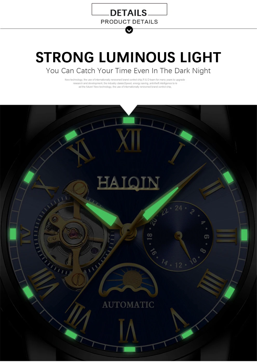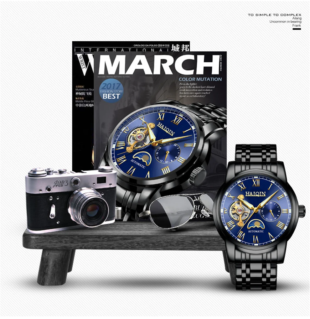 Automatic Machinery Men’s watches HAIQIN New top luxury brand watch men business steel clock men moon watch reloj hombre