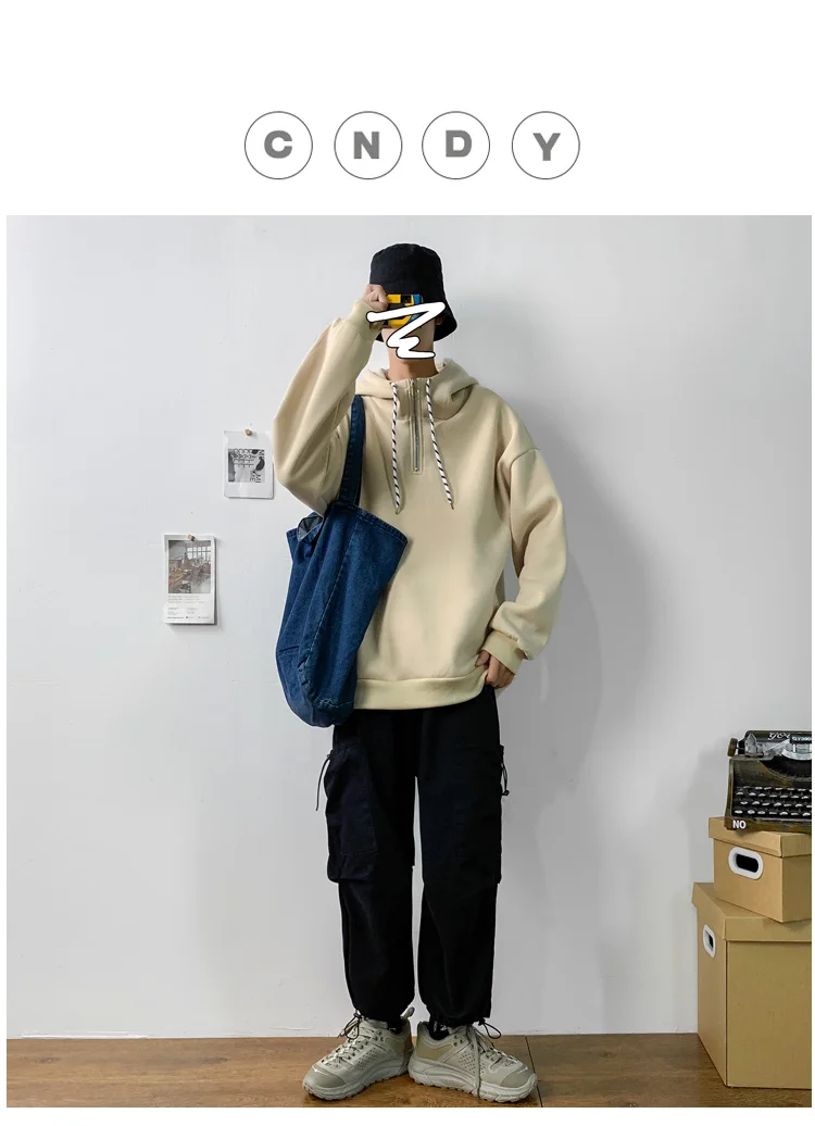 Autumn Winter Thick Men Streetwear Hoodies Sweatshirts Pure Color Hoodies Orange Pullover Warm Fleece Hoodies Men Fashion Tops