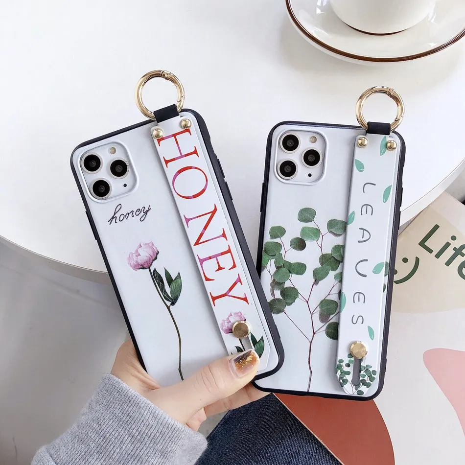 AXBETY For iPhone 11 Pro 7 8 Plus X XS MAX Fashion Flower Lanyard Stand Phone Case For iPhone XR 8 7 6s Stand Cover Coque