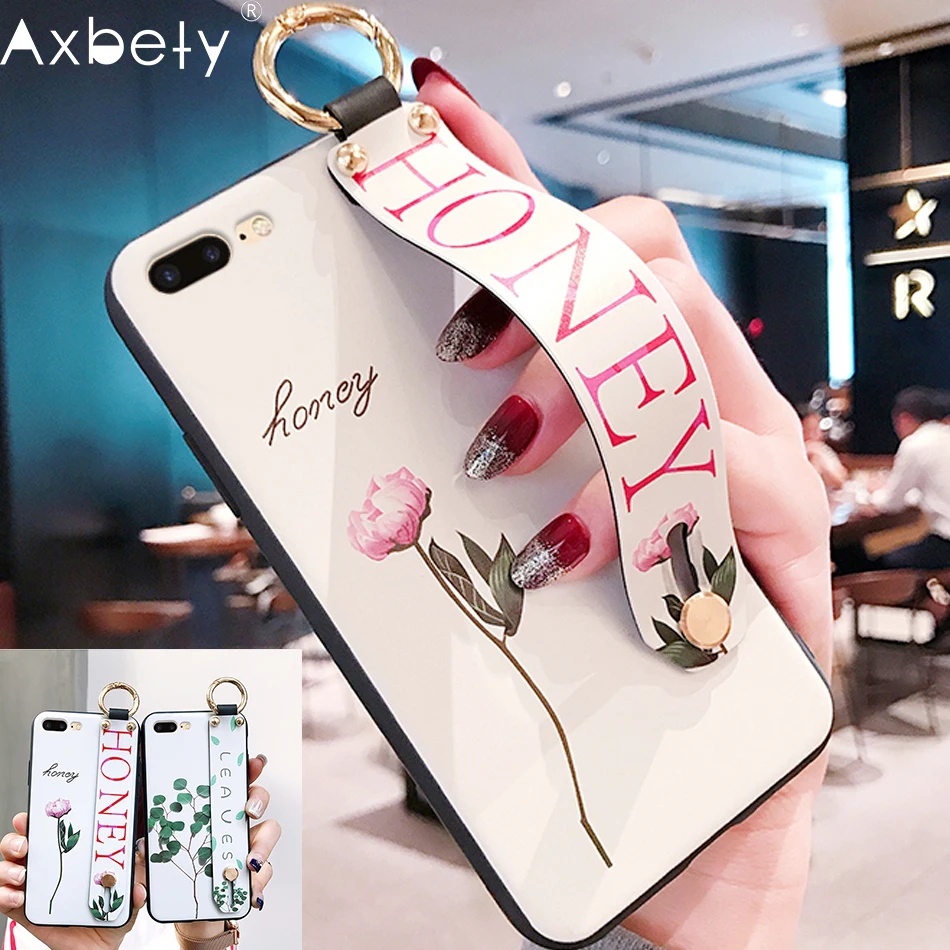 AXBETY For iPhone 11 Pro 7 8 Plus X XS MAX Fashion Flower Lanyard Stand Phone Case For iPhone XR 8 7 6s Stand Cover Coque