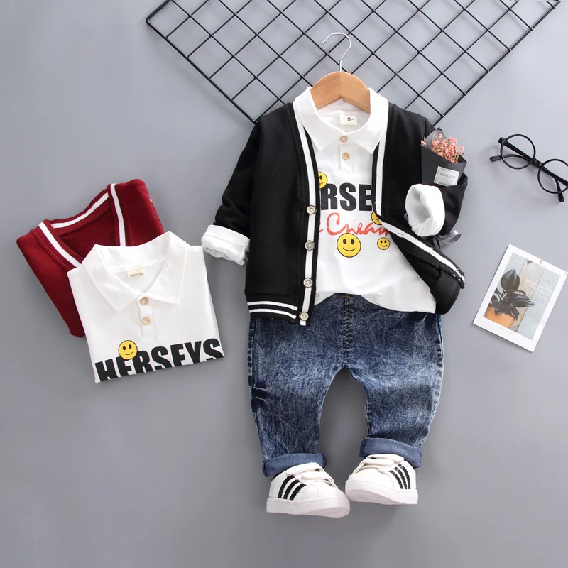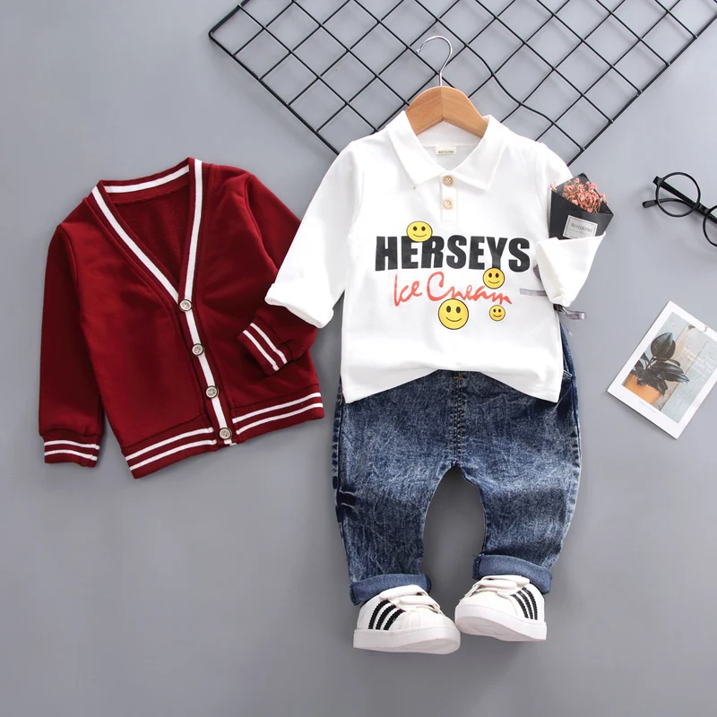 2020 Spring Autumn Children Girls Boys Cotton Clothing Fashion Baby Jacket T-Shirt Jeans 3pcs/Set Kids Fashion Casual Leisure Suits For 0-4 Years