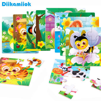 New 16 Slice Wooden Puzzles Toy Wood Jigsaw Children Forest Animal Learning Games Kids Educational Toys for Baby Gift EY-SY101