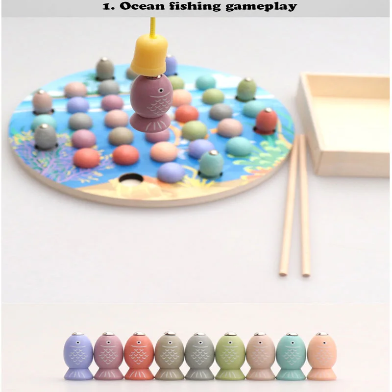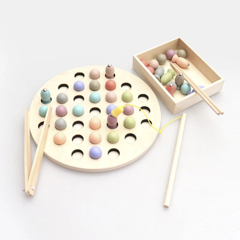 Baby Montessori Wooden Toys Magnetic Catch Worms 3D Puzzle Educational Game Fishing Color Math Children Toys For 1 2 3 Years Old