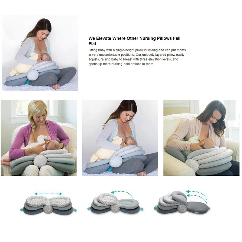 Layered pillow easily adjusts,raising baby to breast with three elevation levels and opens up more nursing-hold to mom