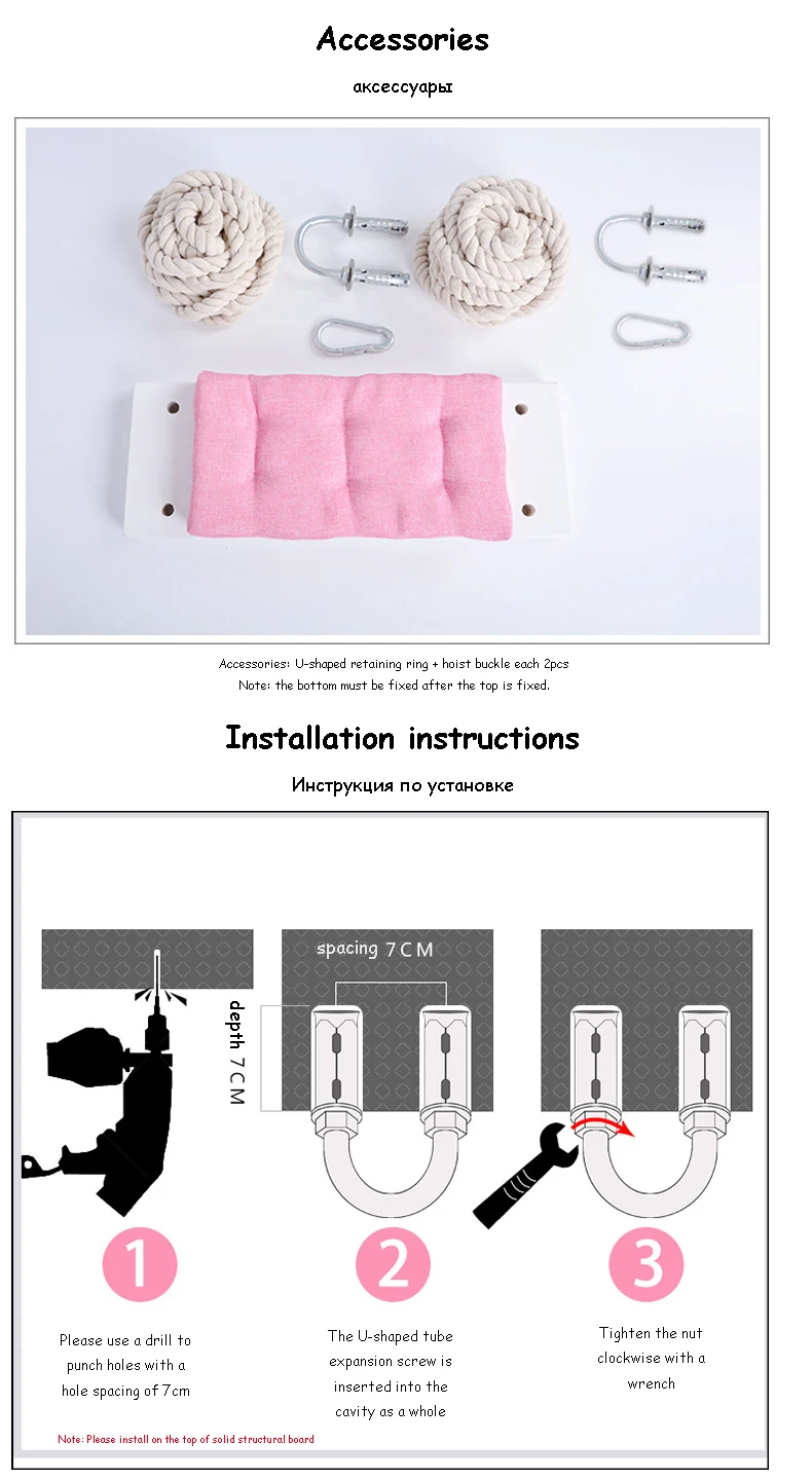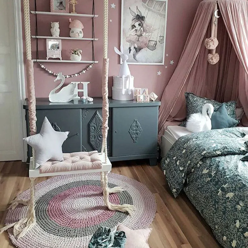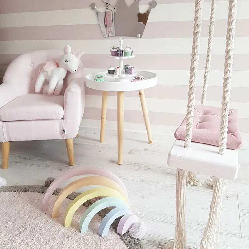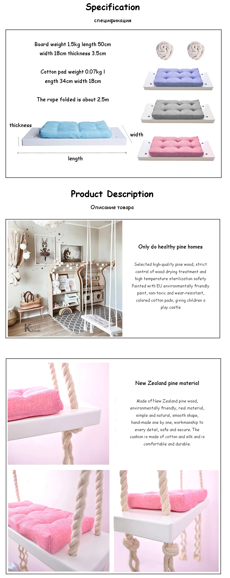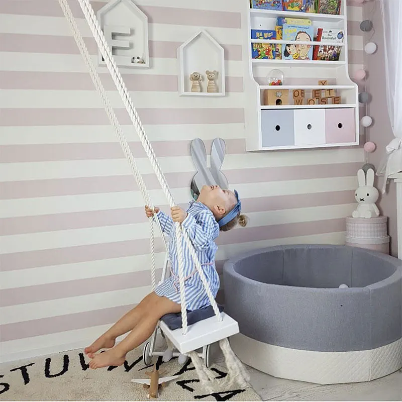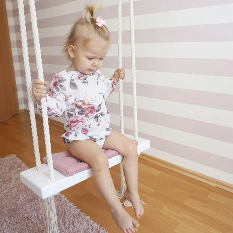 Baby Swing Chair Hanging Swings Set Rocking Solid Wood Seat with Cushion Safety Baby Indoor Baby Room Decor Furniture Children