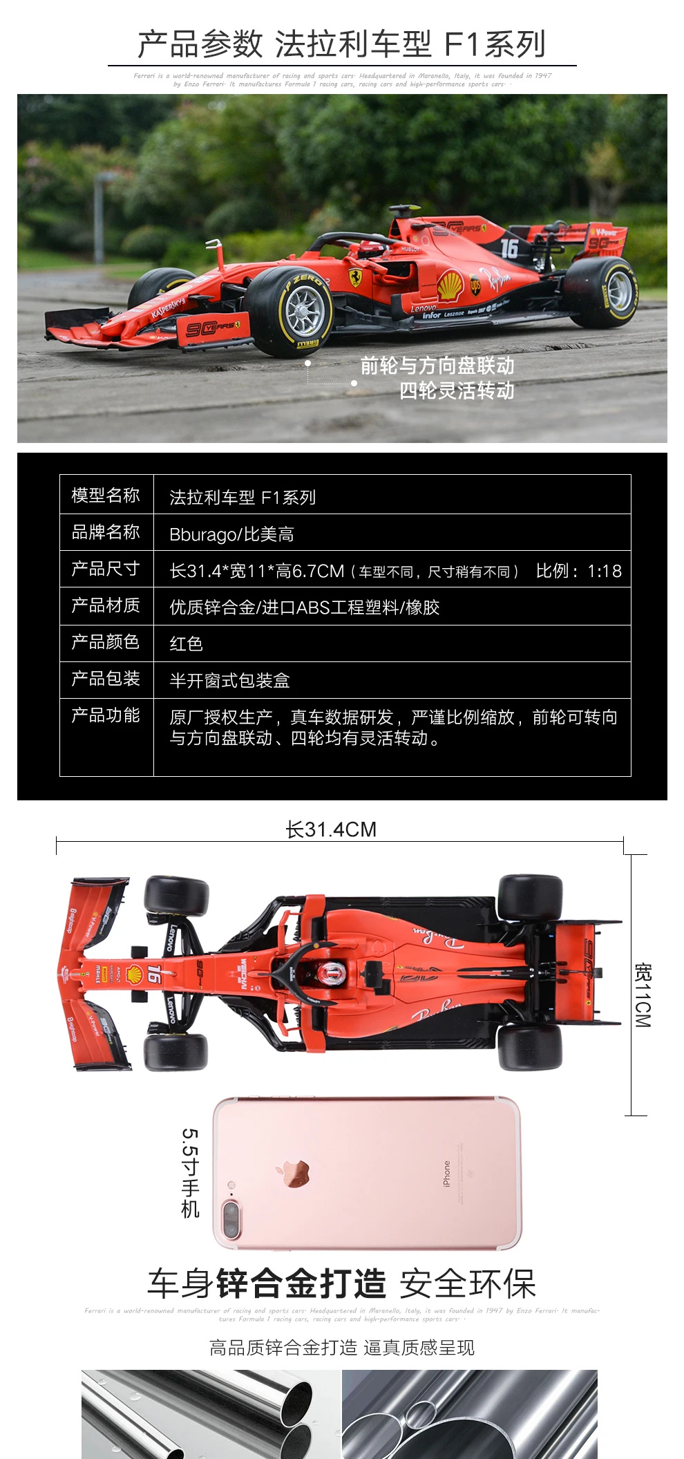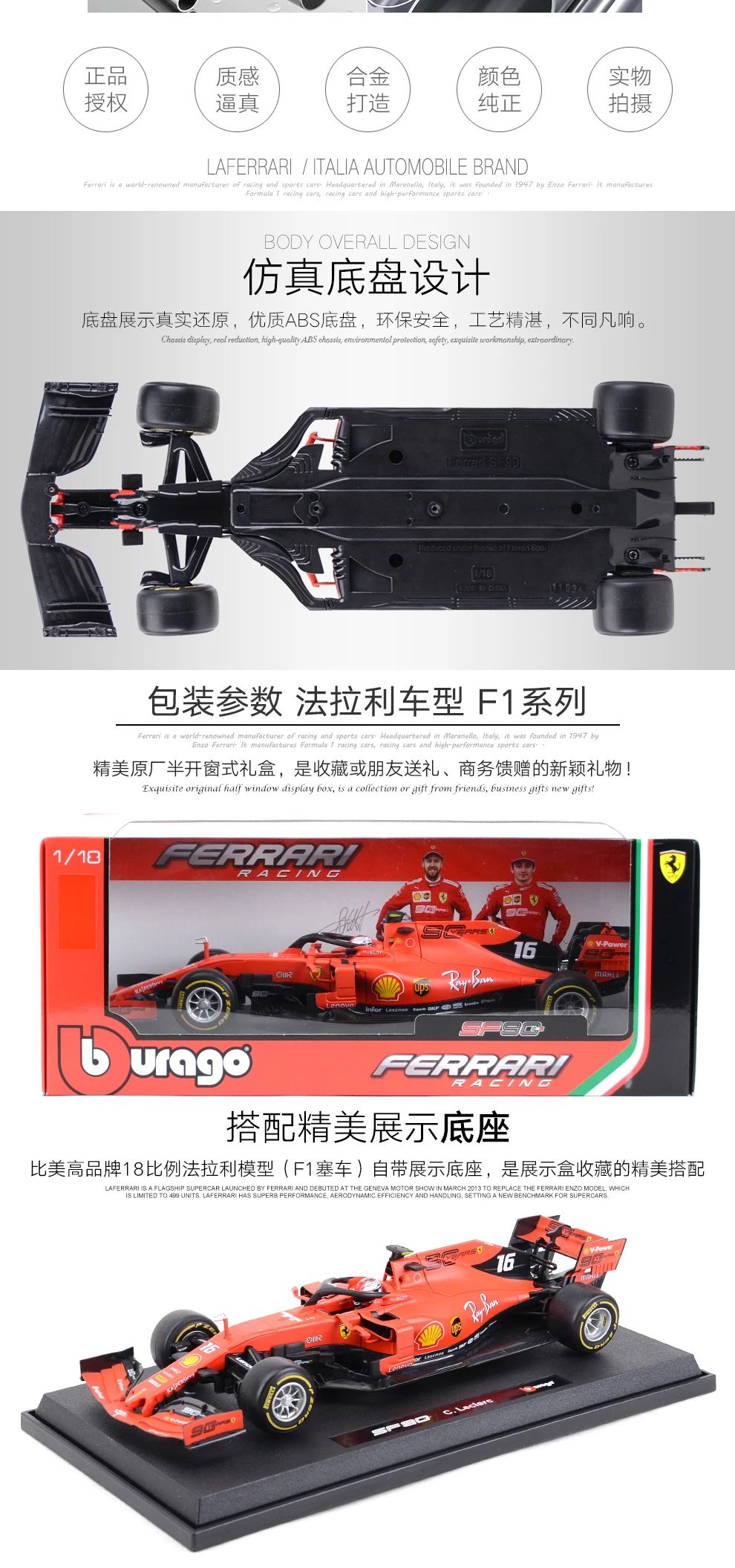 Bburago 1:18 SF90 F1 Racing #16 #05 Formula Car Static Simulation Diecast Alloy Model Car