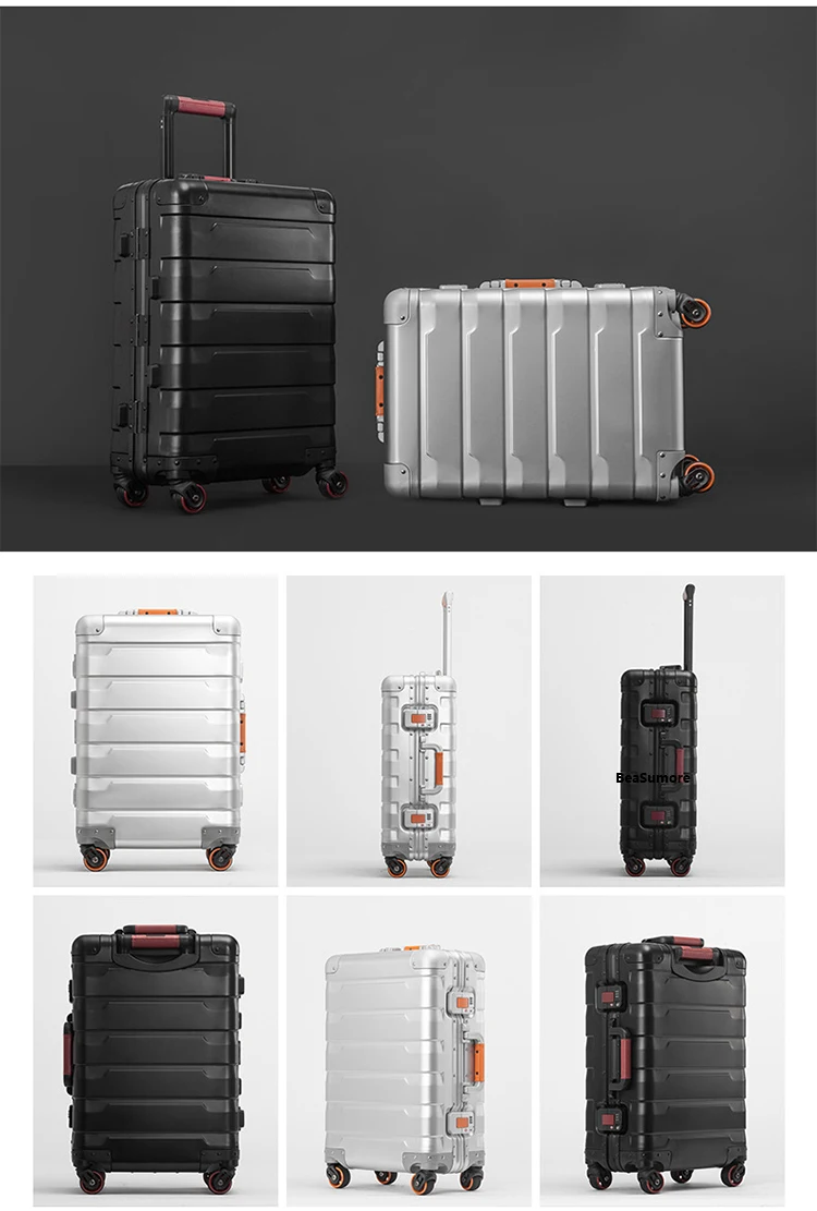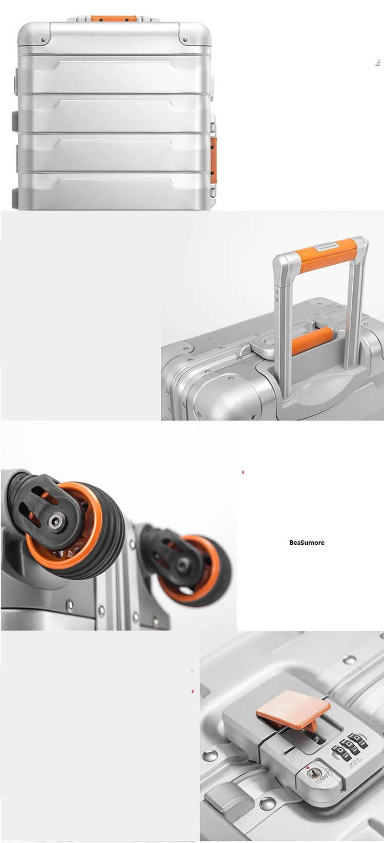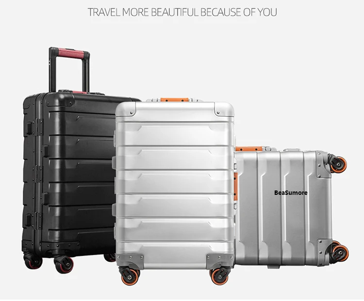 BeaSumore 100% aluminum alloy Retro Rolling Luggage Spinner 20/24 inch High capacity Trolley Men Business Cabin Suitcase Wheels