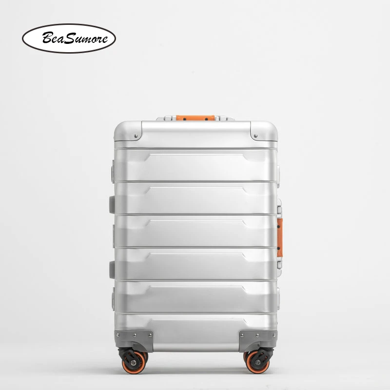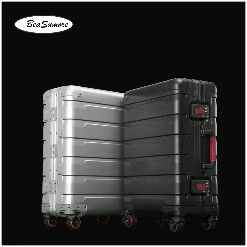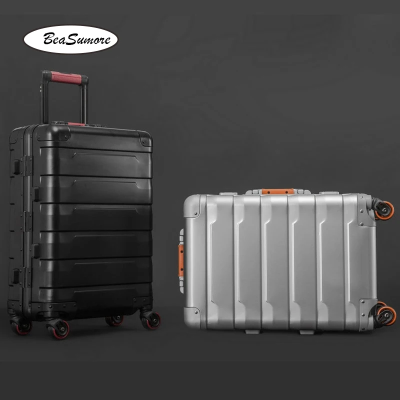 BeaSumore 100% aluminum alloy Retro Rolling Luggage Spinner 20/24 inch High capacity Trolley Men Business Cabin Suitcase Wheels