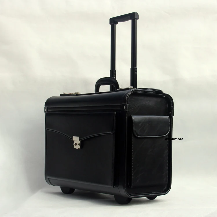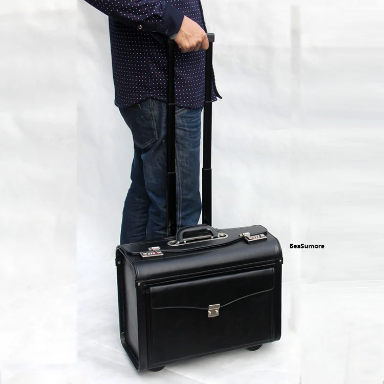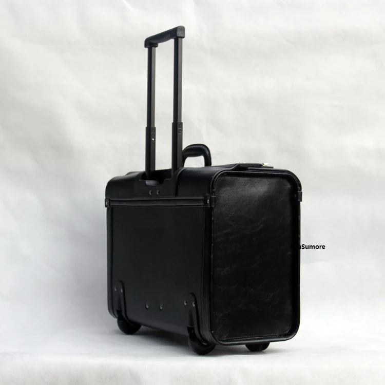 BeaSumore Multifunction PU Leather Rolling Luggage Spinner Men Women pilot Suitcase Wheels 19 Inch Carry Ons Laptop bag Trolley