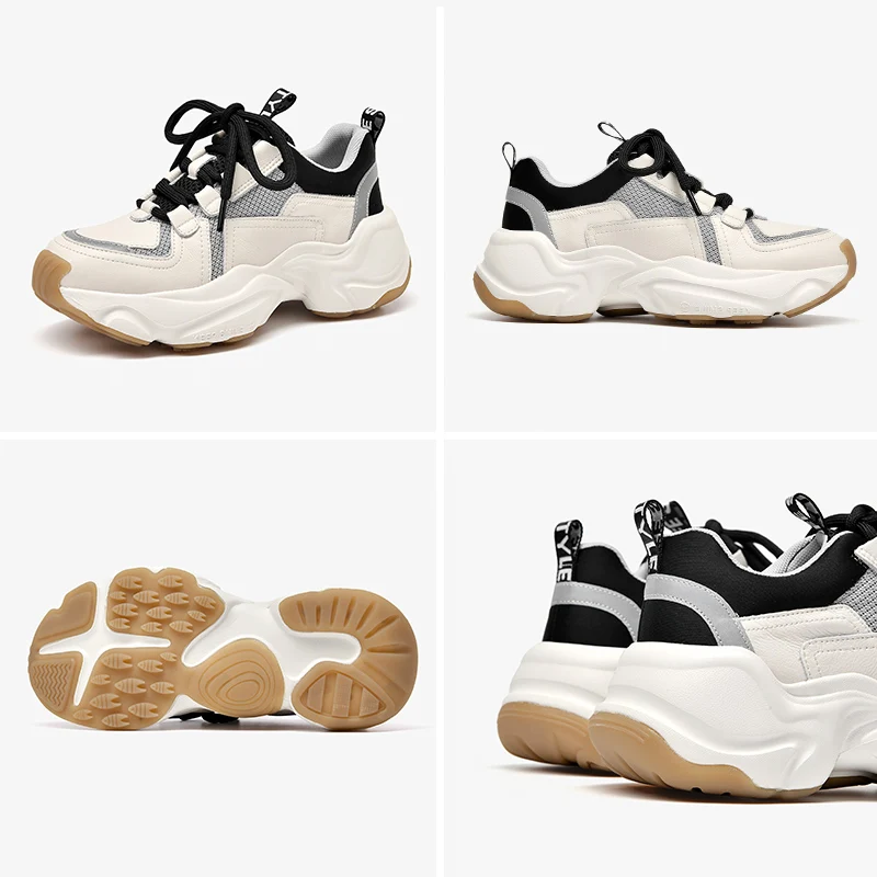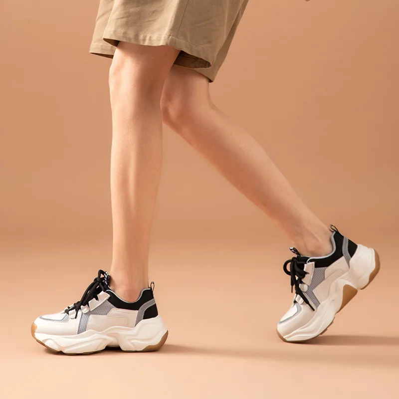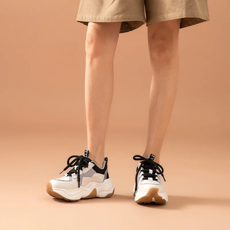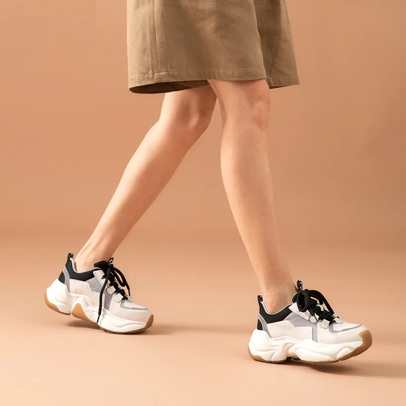 BeauToday Chunky Sneakers Women Genuine Cow Leather Nylon Mesh Retro Design Lace-Up Closure lady Platform Shoes Handmade 2933310