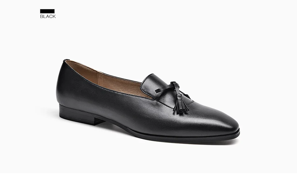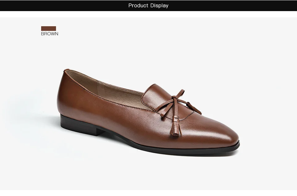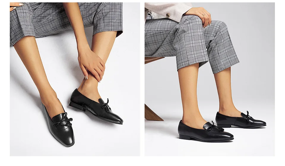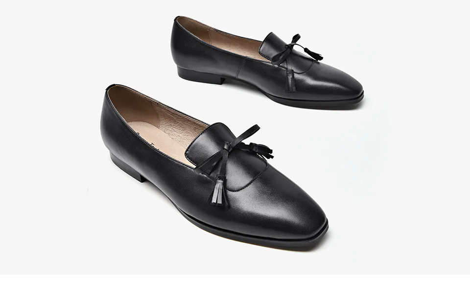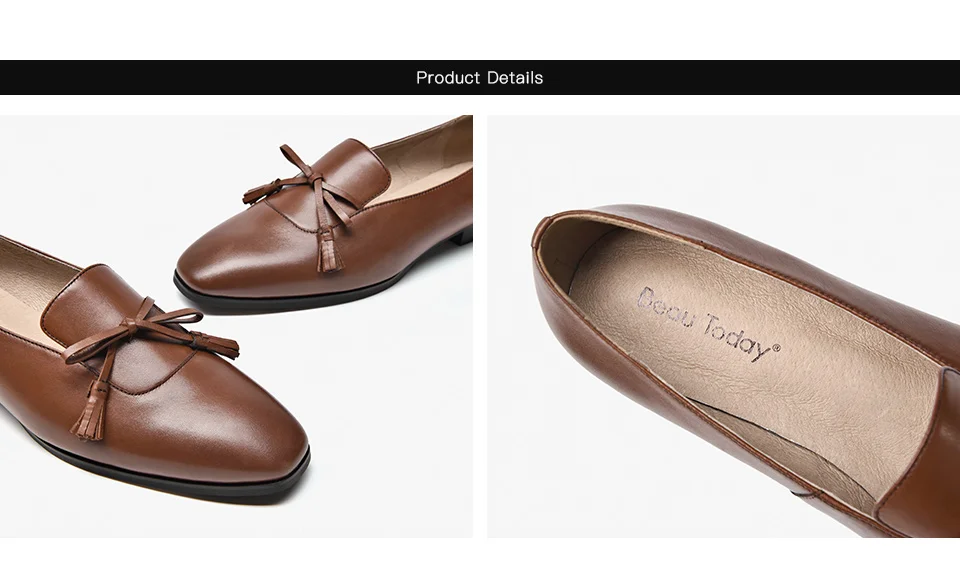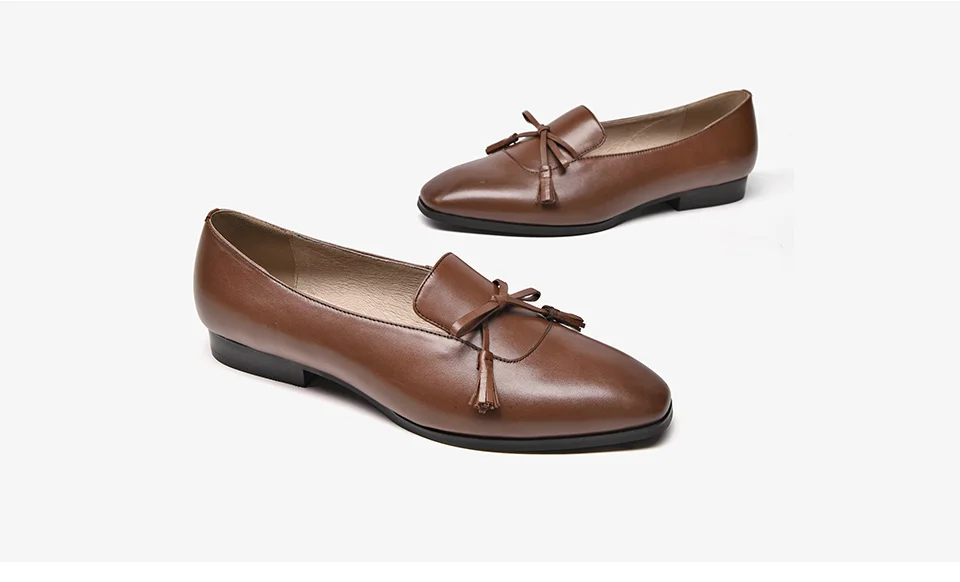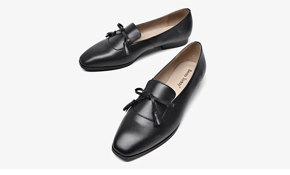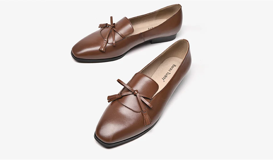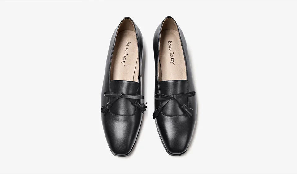 BeauToday Fringes Loafers Women Calfskin Genuine Leather Butterfly-Knot Square Toe Ladies Slip On Flats Handmade 27084
