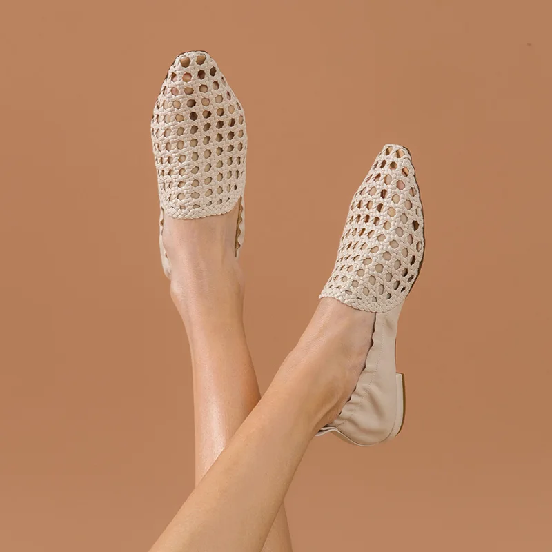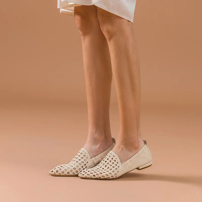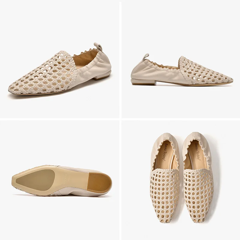BeauToday Loafers Women Sheepskin Genuine Leather Hollow Square Toe Slip-On Spring Summer Lady Casual Flat Shoes Handmade 30069
