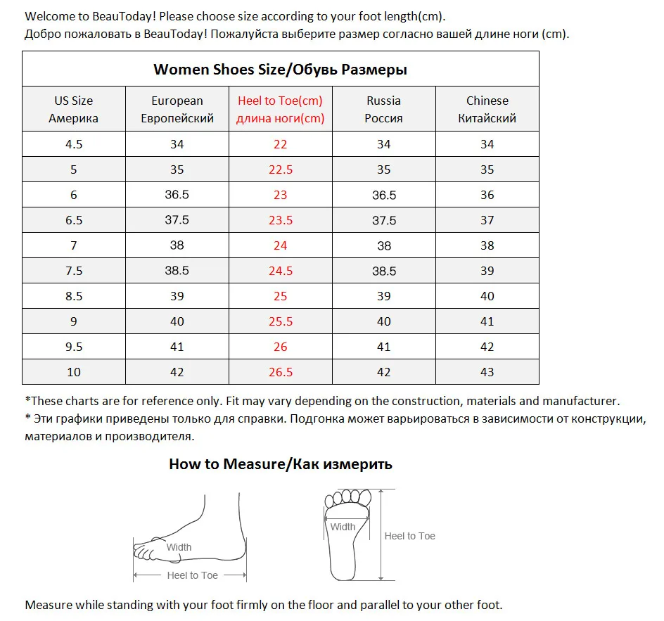 SizeRussiaChinese SizeEuropeanHeel to Toe