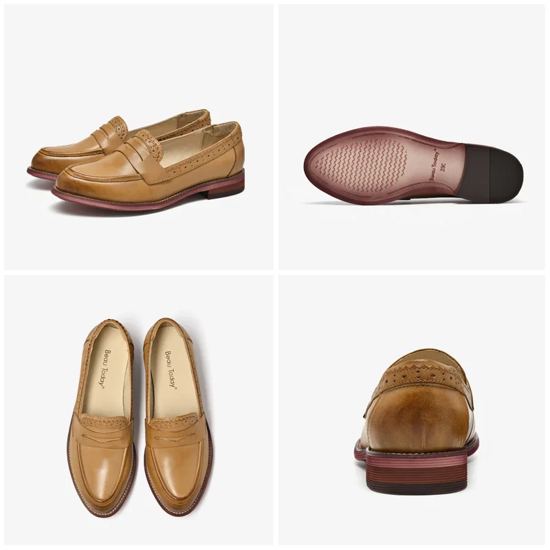 BeauToday Penny Loafers Women Sheepskin Moccasin Genuine Leather Slip On Pointed Toe Flats Plus Size Shoes Handmade 27013