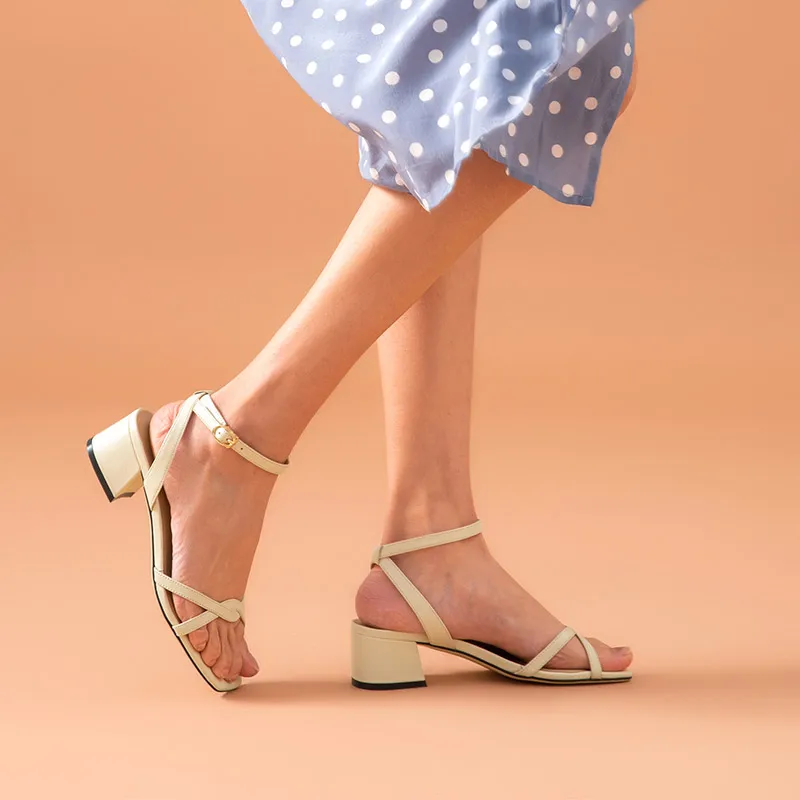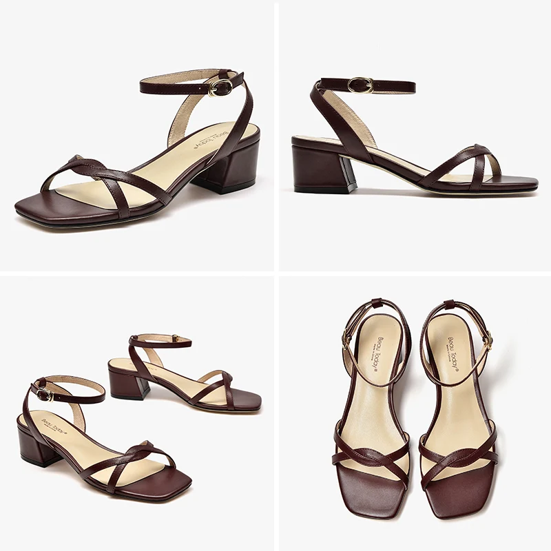 BeauToday Pump Sandals Women Genuine Cow Leather Square Toe Ankle Buckle Strap Retro Summer Ladies Med Heel Shoes Handmade 31087
