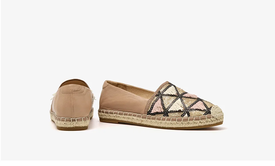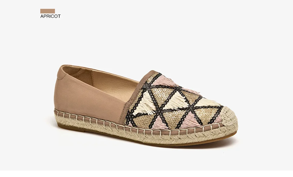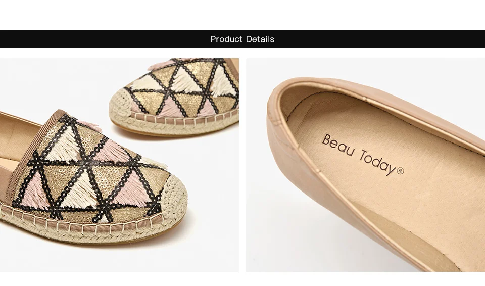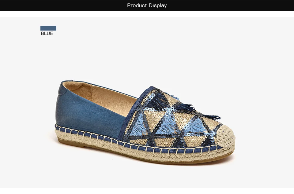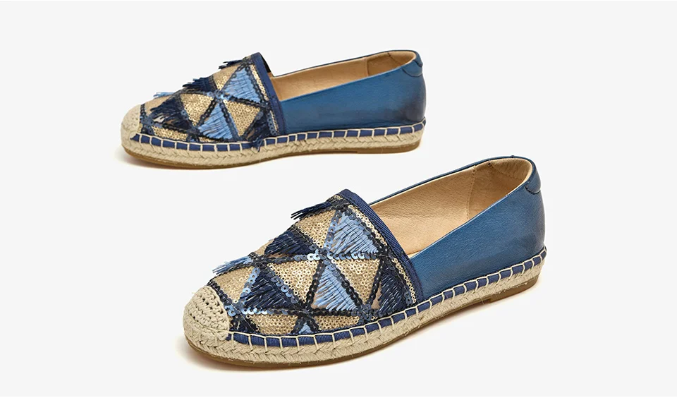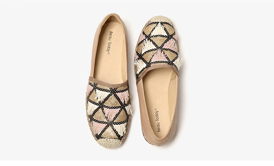 BeauToday Sequins Tassel Loafers Women Genuine Leather Sheepskin Mesh Mixed Colors Round Toe Lady Flats Handmade 24035