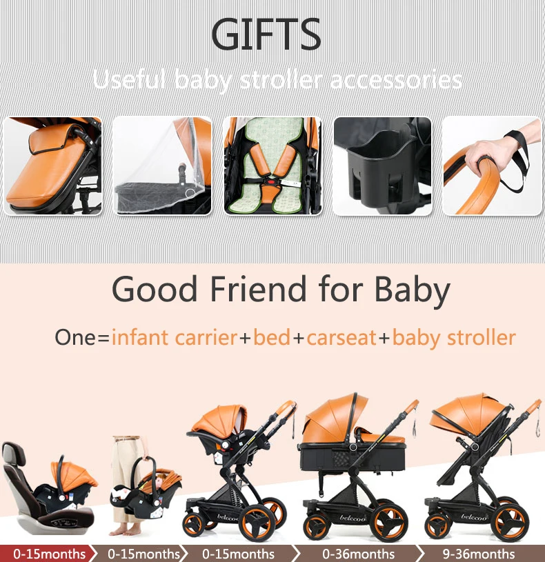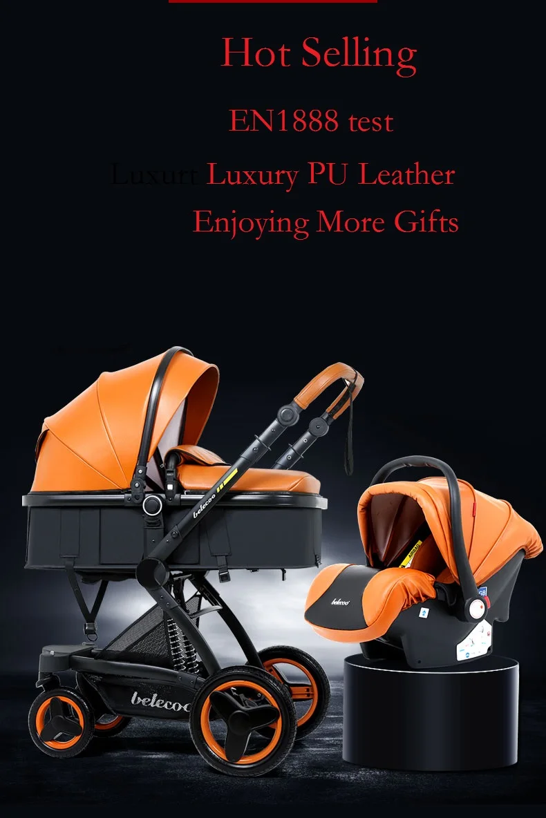 Belecoo Luxury Multifunctional Baby Stroller 2 in 1 Carriage High Landscape Pram Suite for Lying and Seating with 5 Gifts