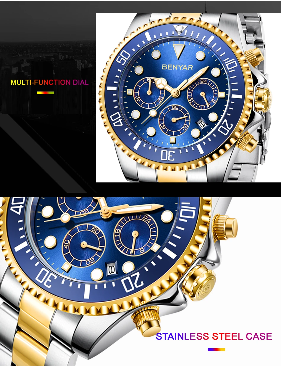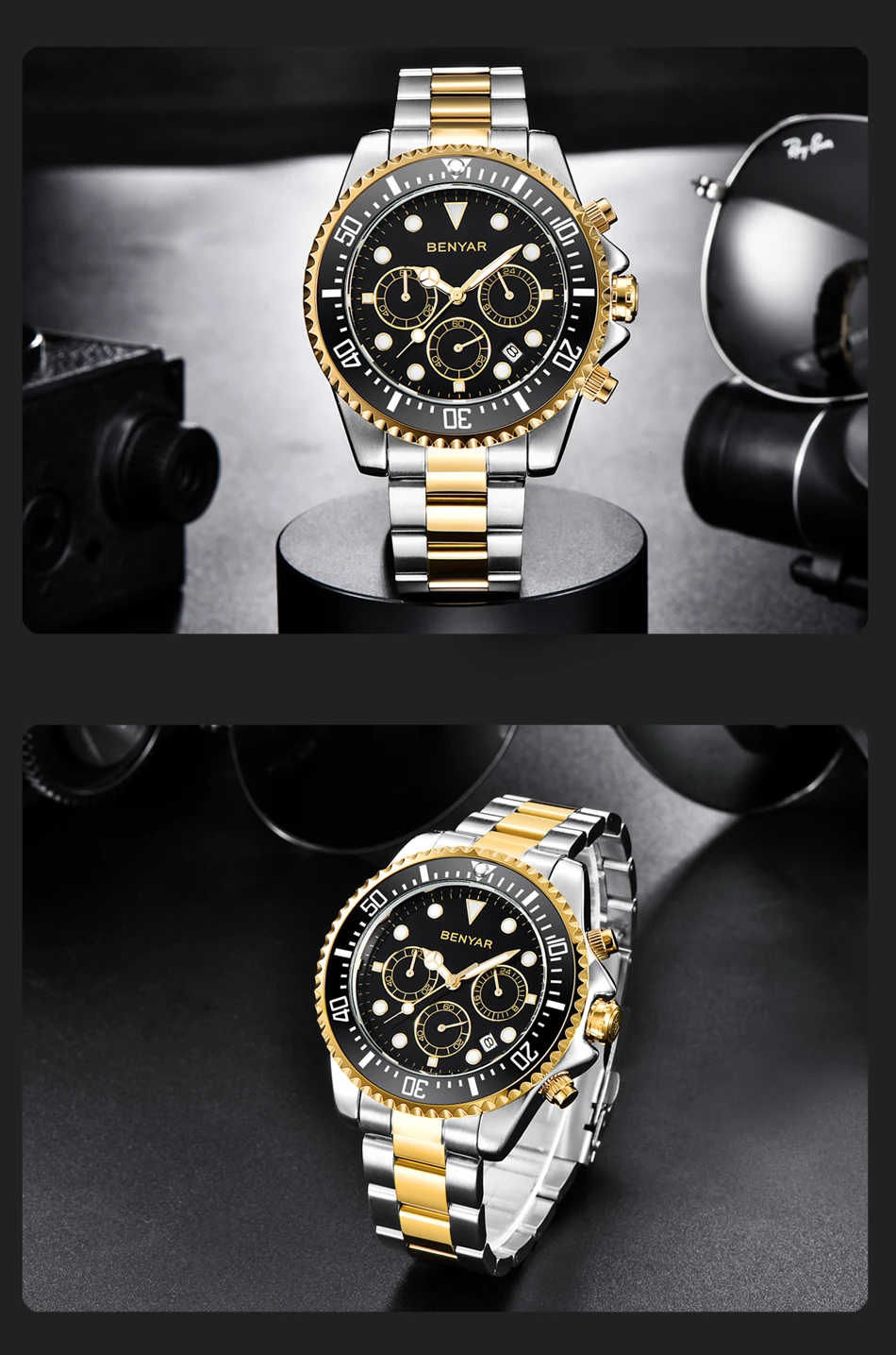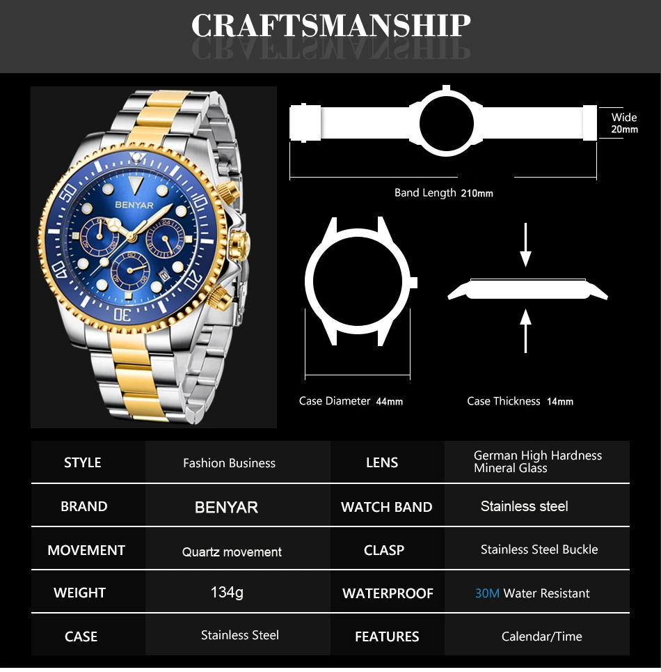 BENYAR 2020 Mens Casual Sport Watch Top Brand Luxury Army Military Mens Wrist Watch stainless steel Clock Relogio Masculino