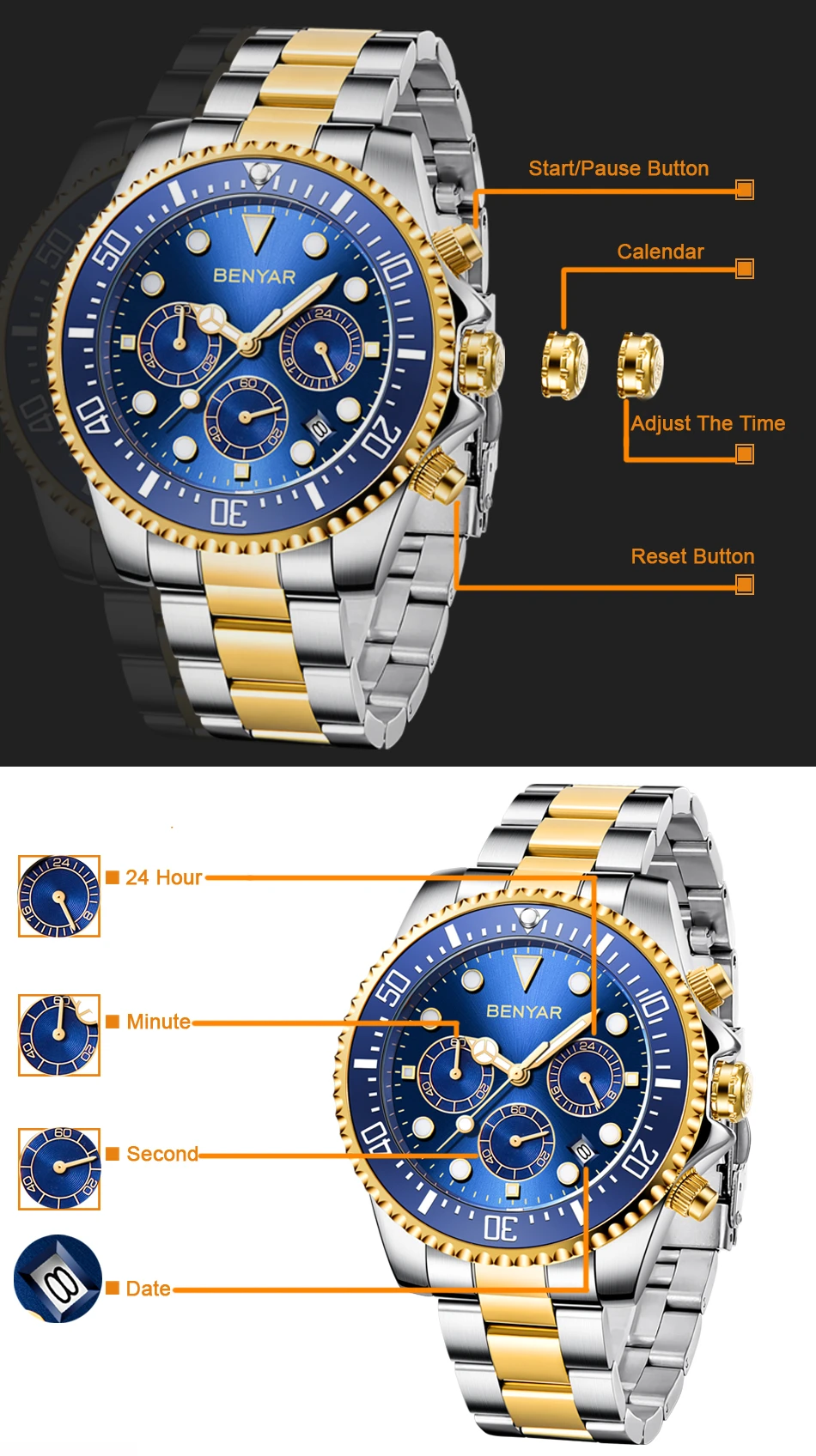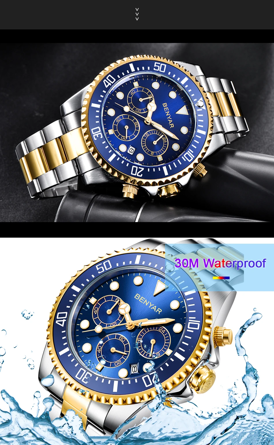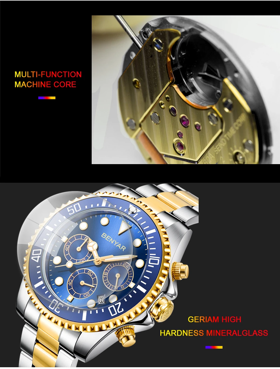 BENYAR 2020 Mens Casual Sport Watch Top Brand Luxury Army Military Mens Wrist Watch stainless steel Clock Relogio Masculino