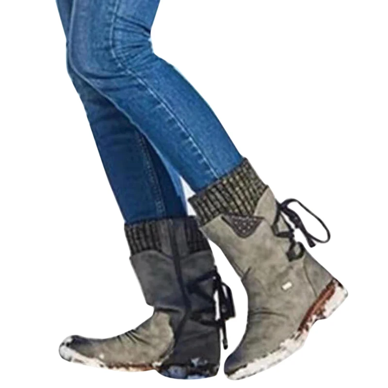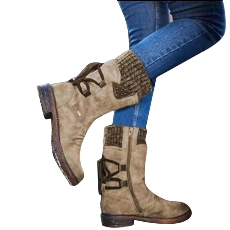 Best Quality Gift Women Boots Winter Autumn Girls Flat Heel Boot Fashion Knitting Patchwork Shoes