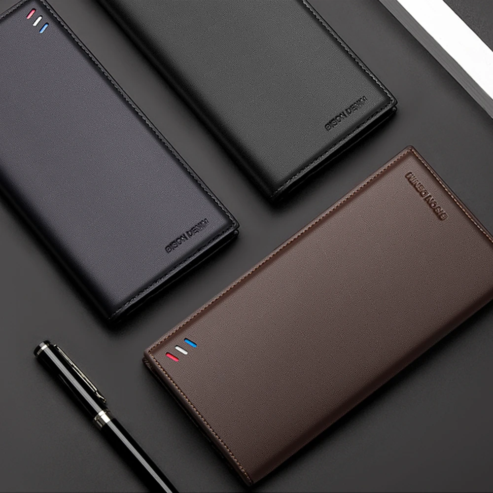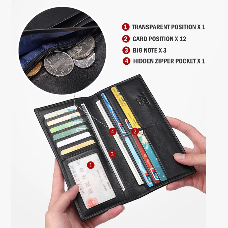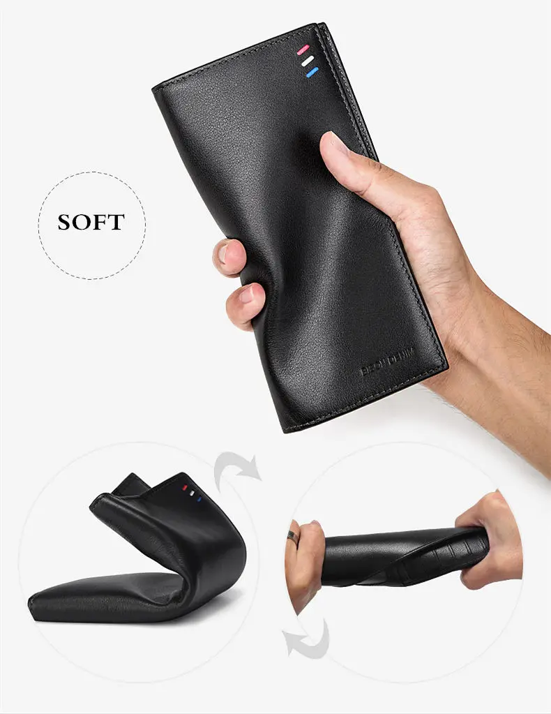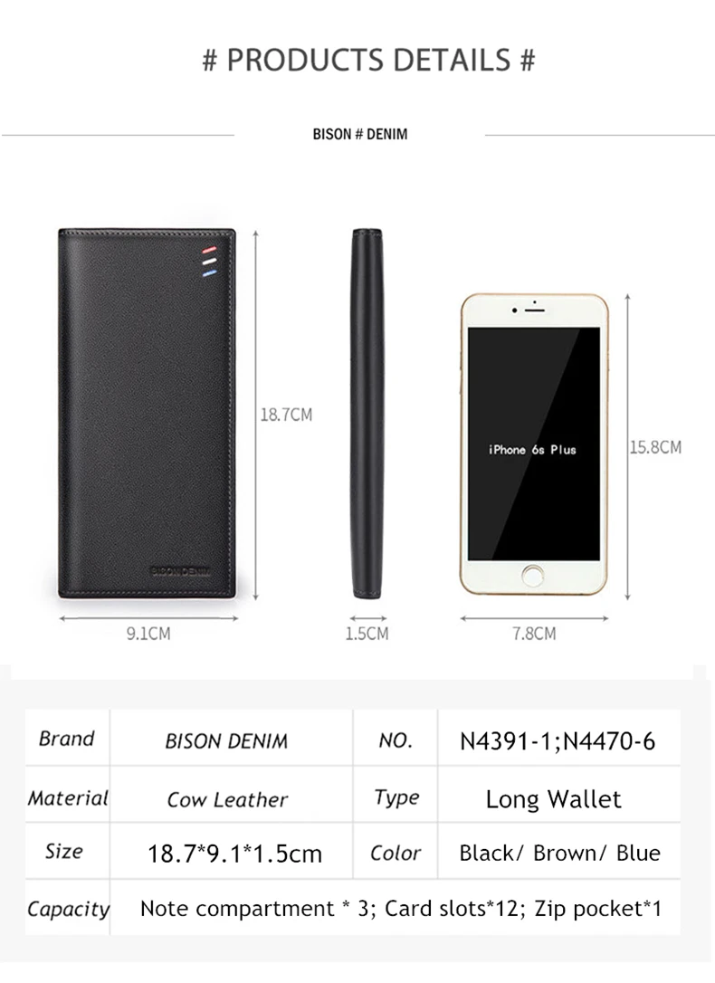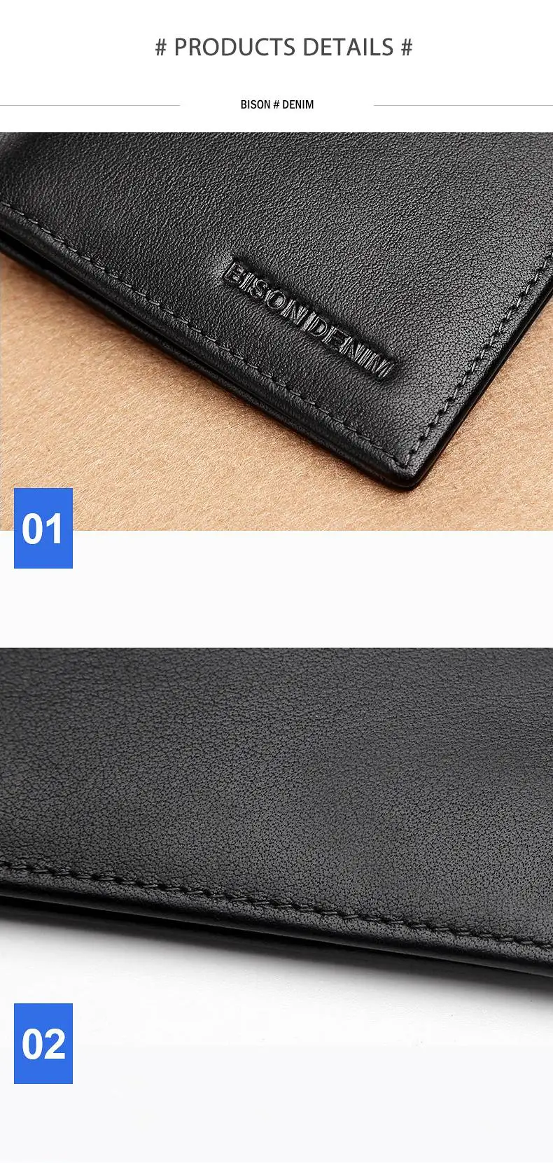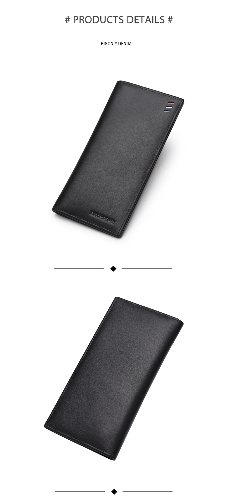 BISON DENIM Genuine Leather Wallet Men Long Business Slim Wallet Cow Leather Wallet Clutch Bag Male Card ID Money Purse N4391