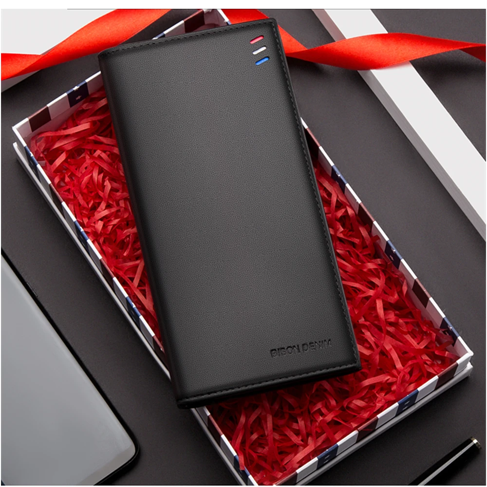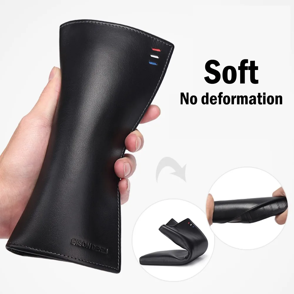 BISON DENIM Genuine Leather Wallet Men Long Business Slim Wallet Cow Leather Wallet Clutch Bag Male Card ID Money Purse N4391