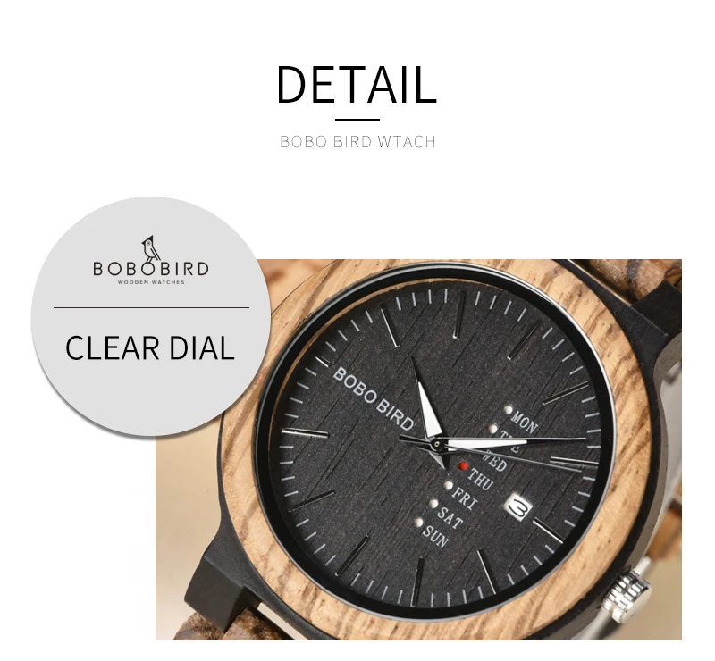 Product description: Watch Brand: BOBO BIRD Model: V-O26 Watch Type: BOBO BIRD Wood Watch Style: Fashion and Casual Mirror Material: Hardlex Dial diameter:45.6mm Weight: about 150g(include box weight)