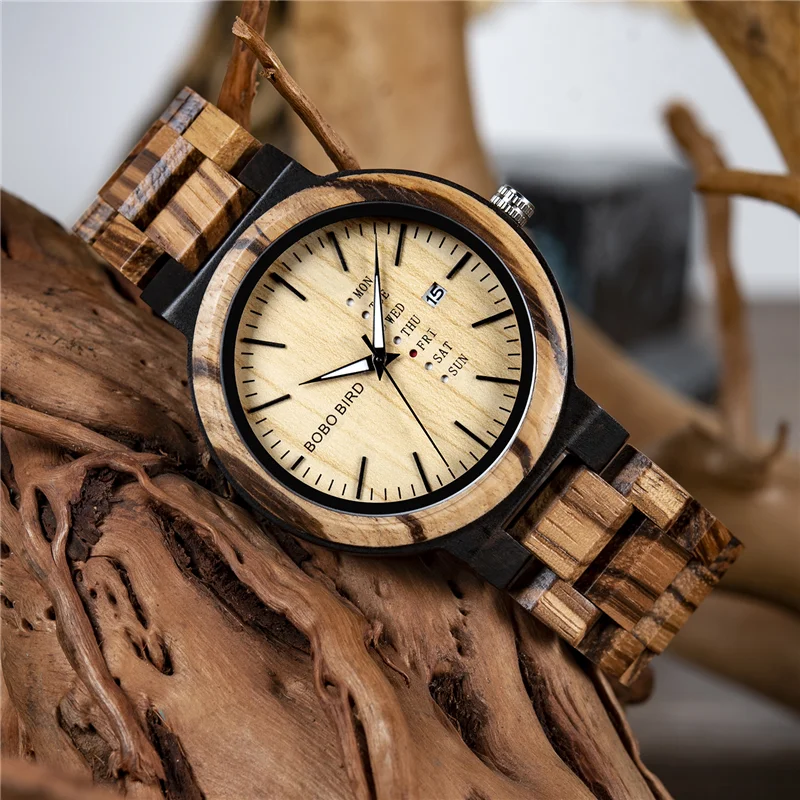 BOBO BIRD Wood Watch Men relogio masculino Week and Date Display Timepieces Casual Wooden Clock Boyfriend Best Gift V-O26