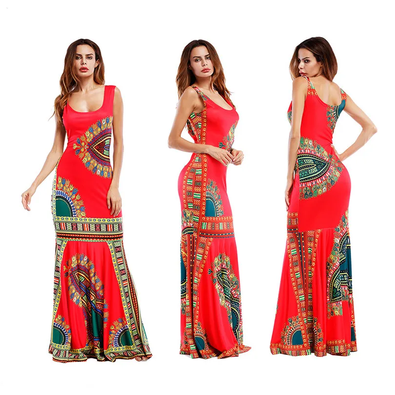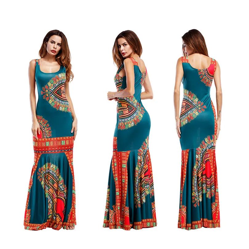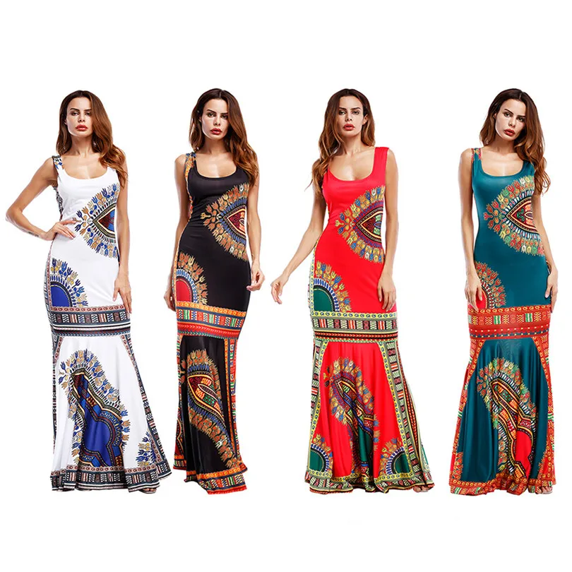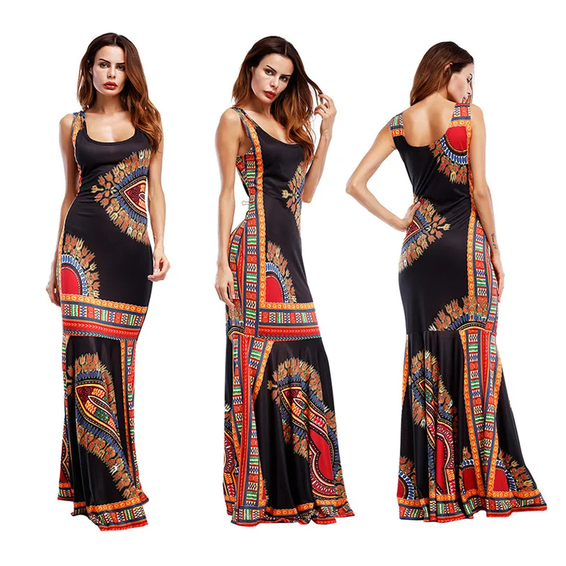 Bohemian Women’s Bodycon Summer Dresses Hippie Tribe Print Sleeveless Sheath Long Maxi Tank Dress Party Club Female Vestidos