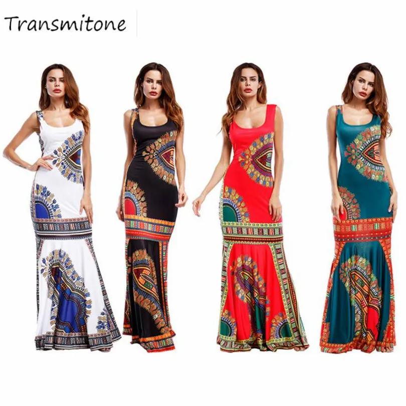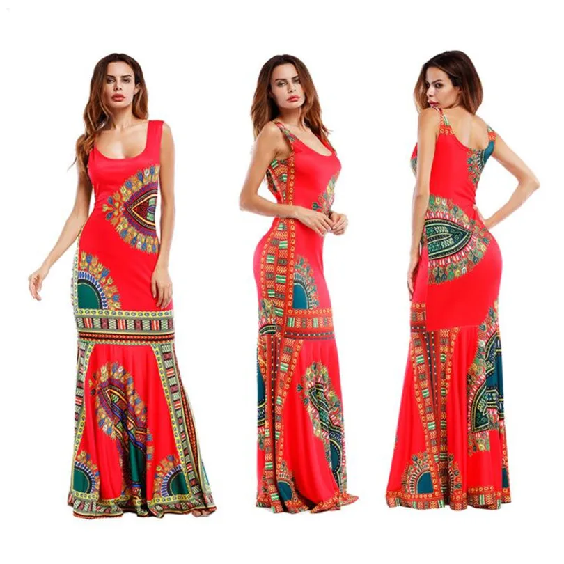 Bohemian Women’s Bodycon Summer Dresses Hippie Tribe Print Sleeveless Sheath Long Maxi Tank Dress Party Club Female Vestidos