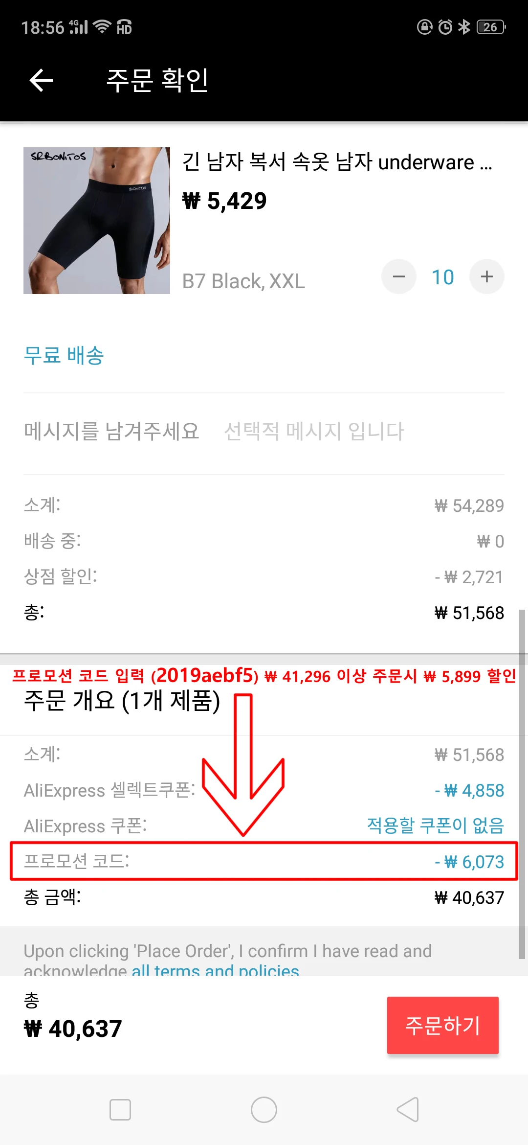 프로모션 코드 입력 (2019aebf5) ₩ 41,296 이상 주문시 ₩ 5,899 할인