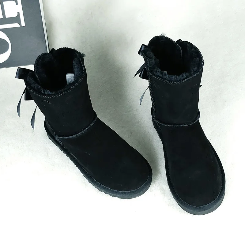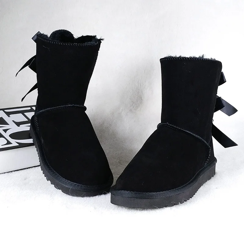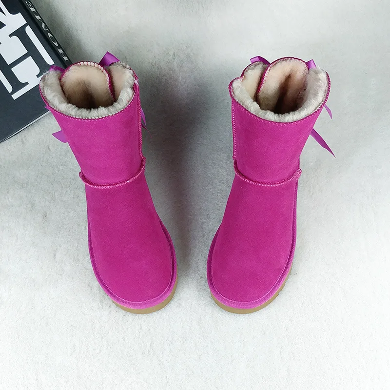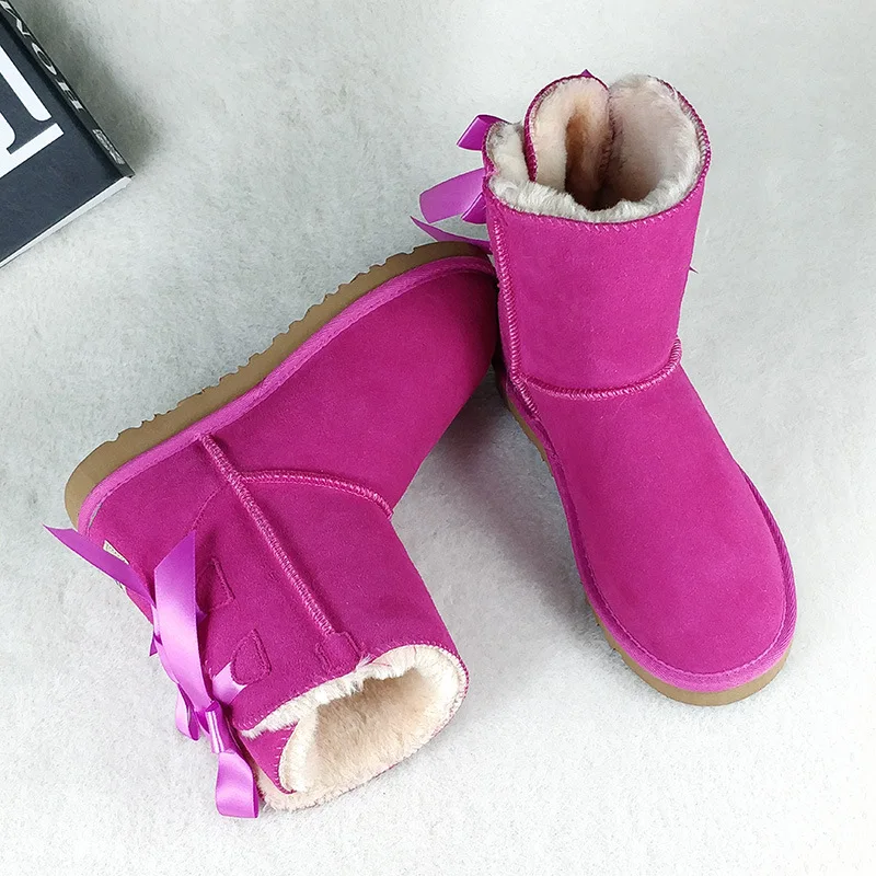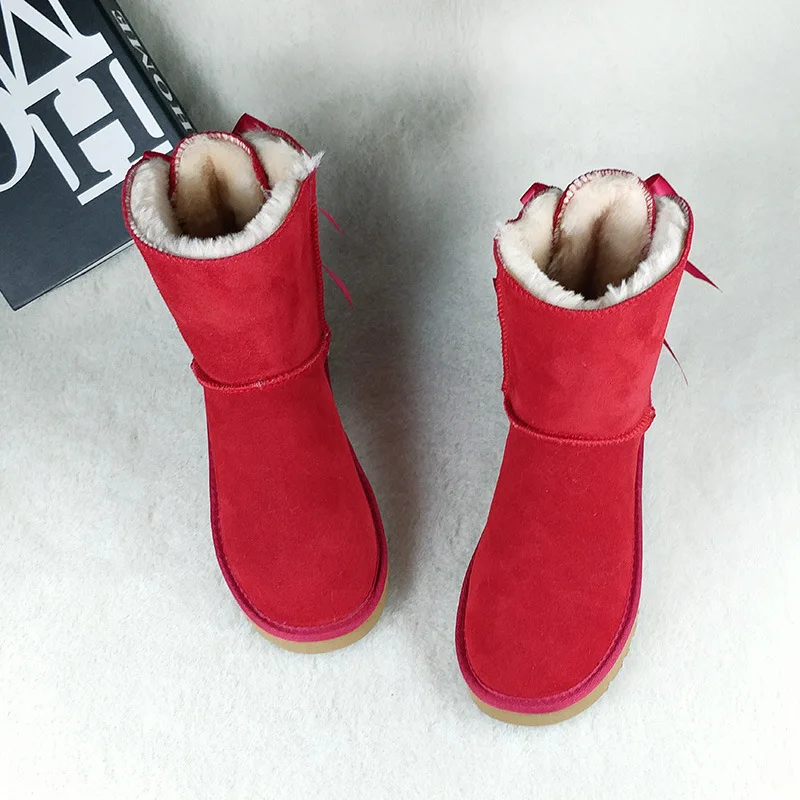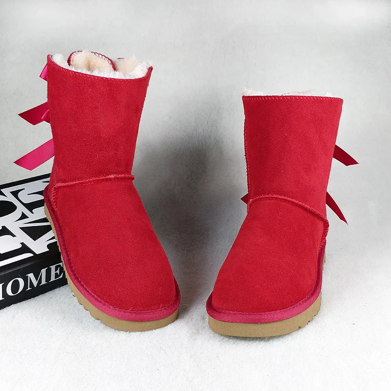 Boots Women Fur Warm Fashion Thick Plush Australia Ugly Snow Shoes Plus Size 45 Winter Students Casual Womens Lovely Riband Red