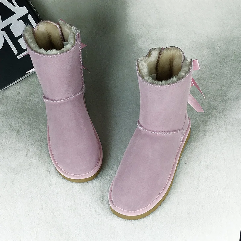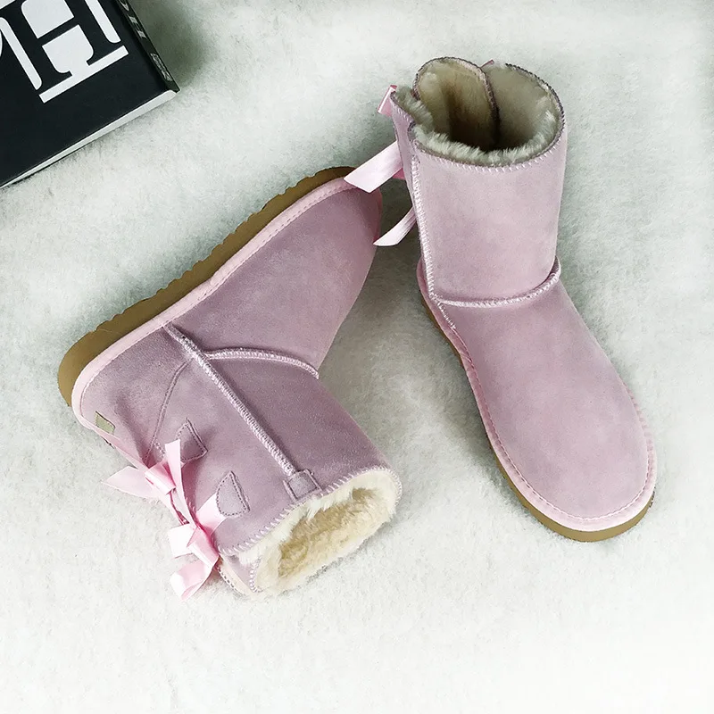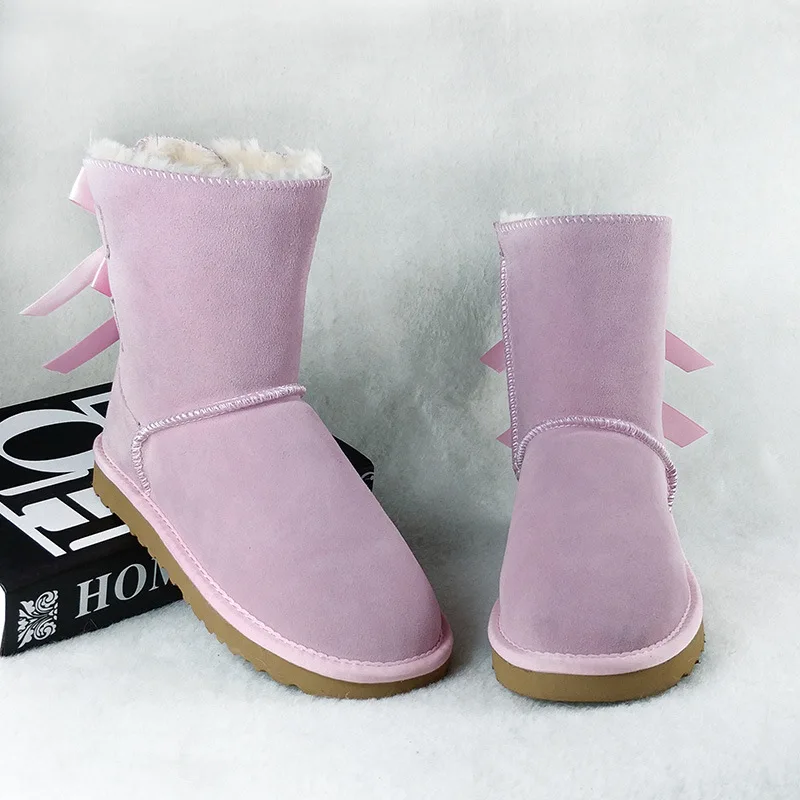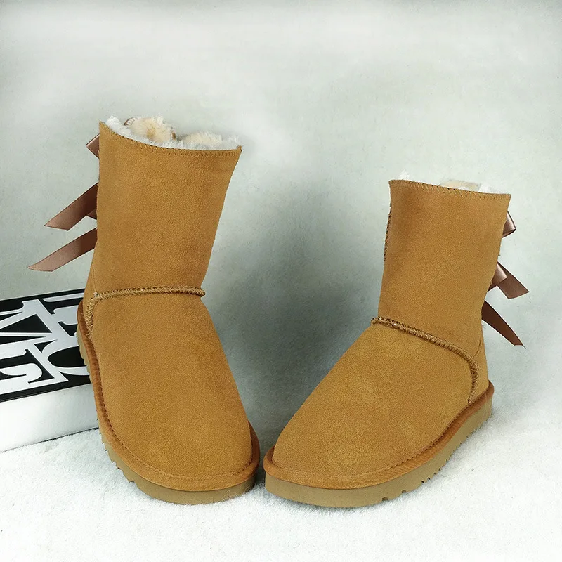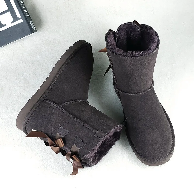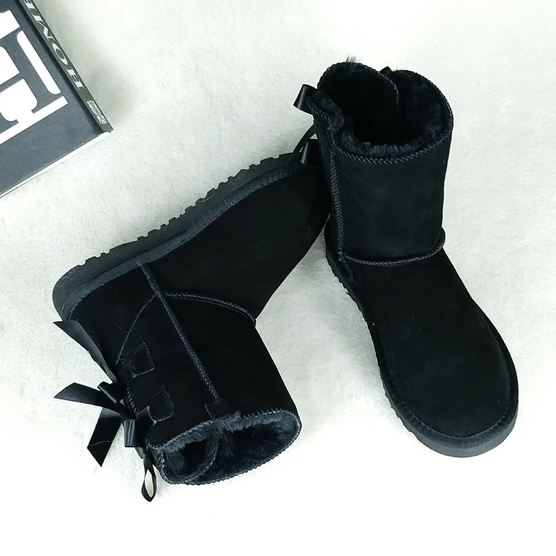 Boots Women Fur Warm Fashion Thick Plush Australia Ugly Snow Shoes Plus Size 45 Winter Students Casual Womens Lovely Riband Red
