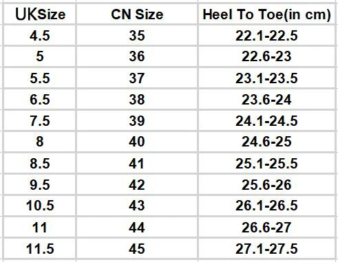 Shoe SizeHeel to Toe(cm)US SizeRussia
