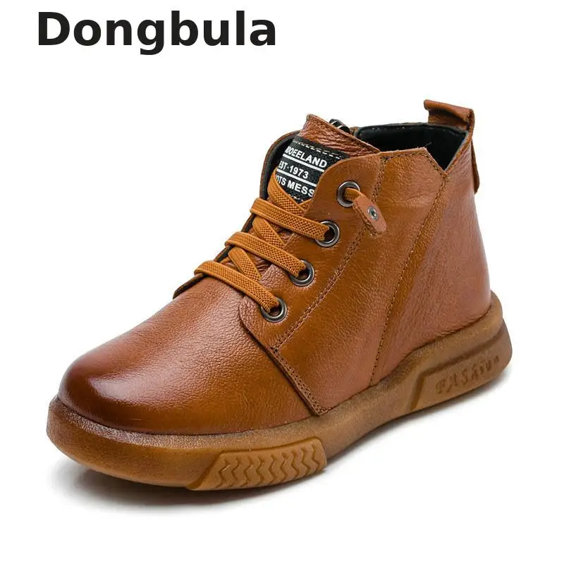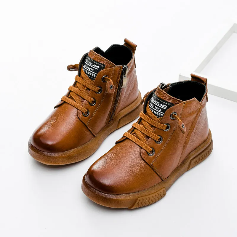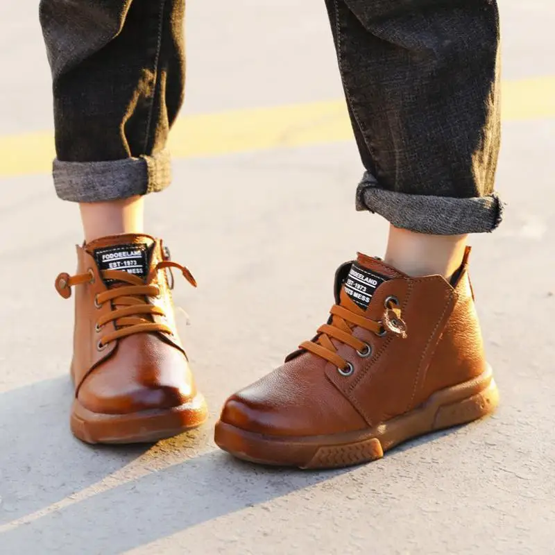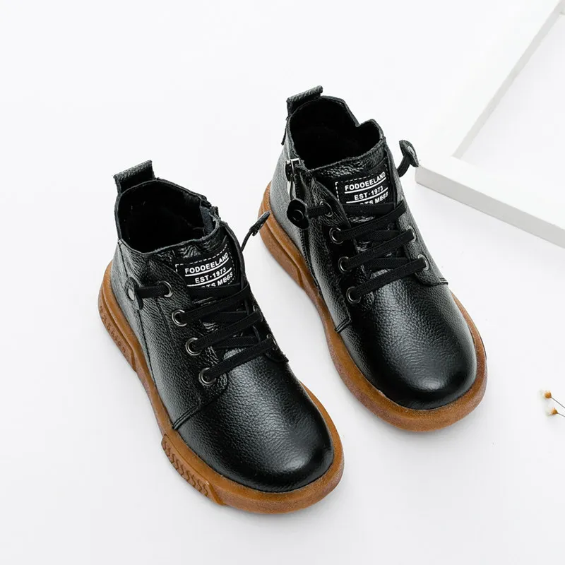 Boys Leather Soft Shoes Children Martin Boots Oxford Black Kids School Casual Boots Fashion Flat Rubber Soft Shoes Non-slip