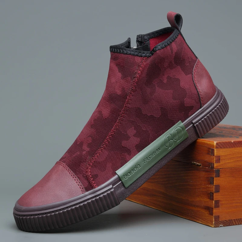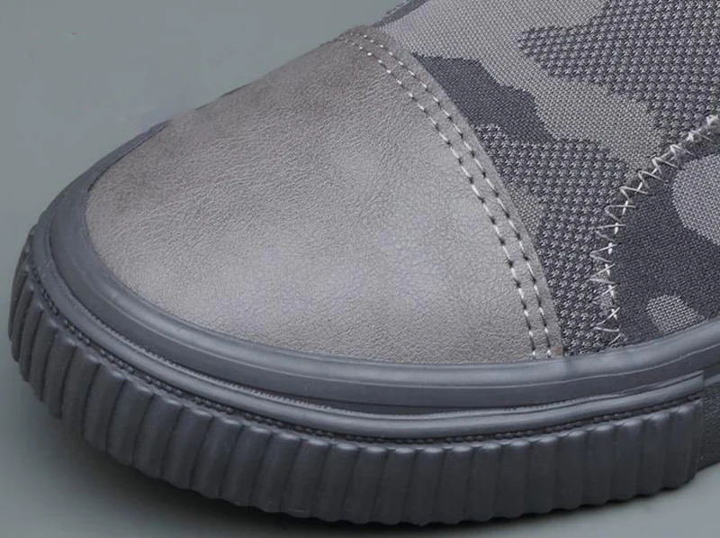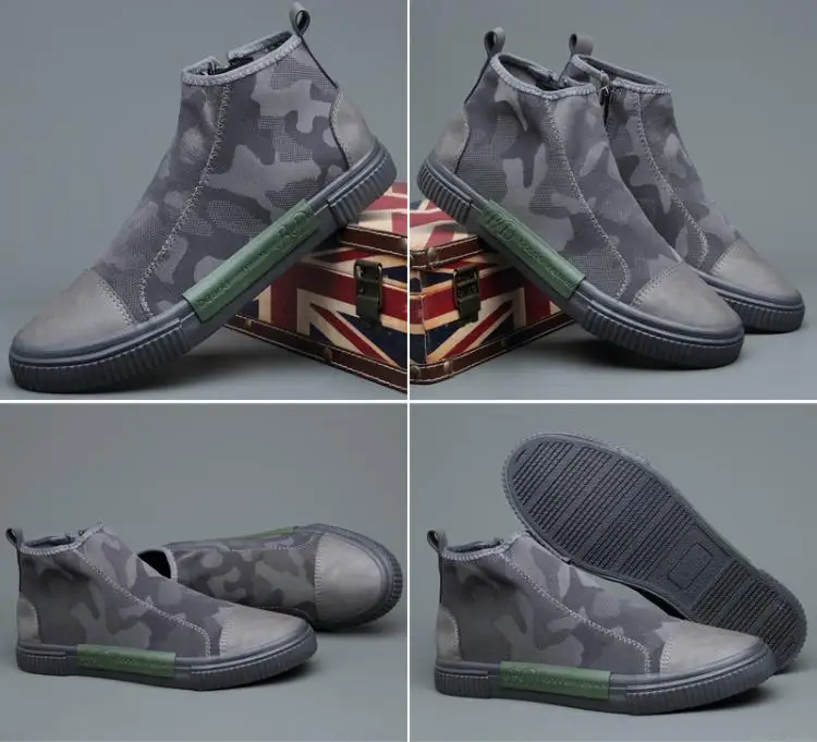 British Fashion Men Boots Breathable Non-slip Casual Shoes Slip On Camouflage Pattern Side Zipper Boots Black Grey M2362