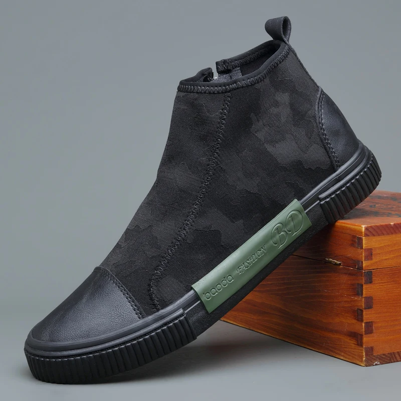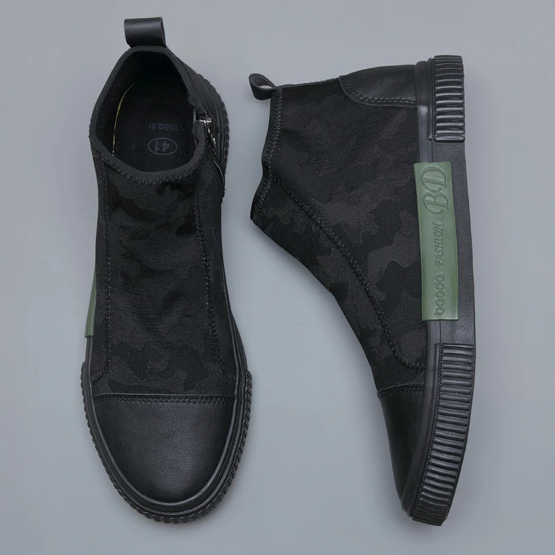 British Fashion Men Boots Breathable Non-slip Casual Shoes Slip On Camouflage Pattern Side Zipper Boots Black Grey M2362