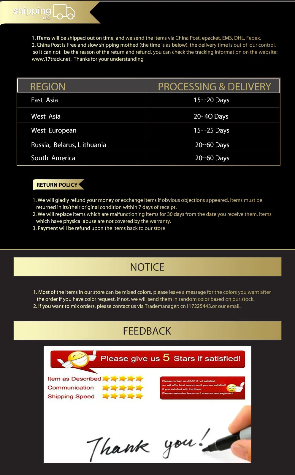 *You can submit refund requests within 15 days after the guaranteed period for delivery (45 days) has expired. You can do it by sending a message on Contact Us page