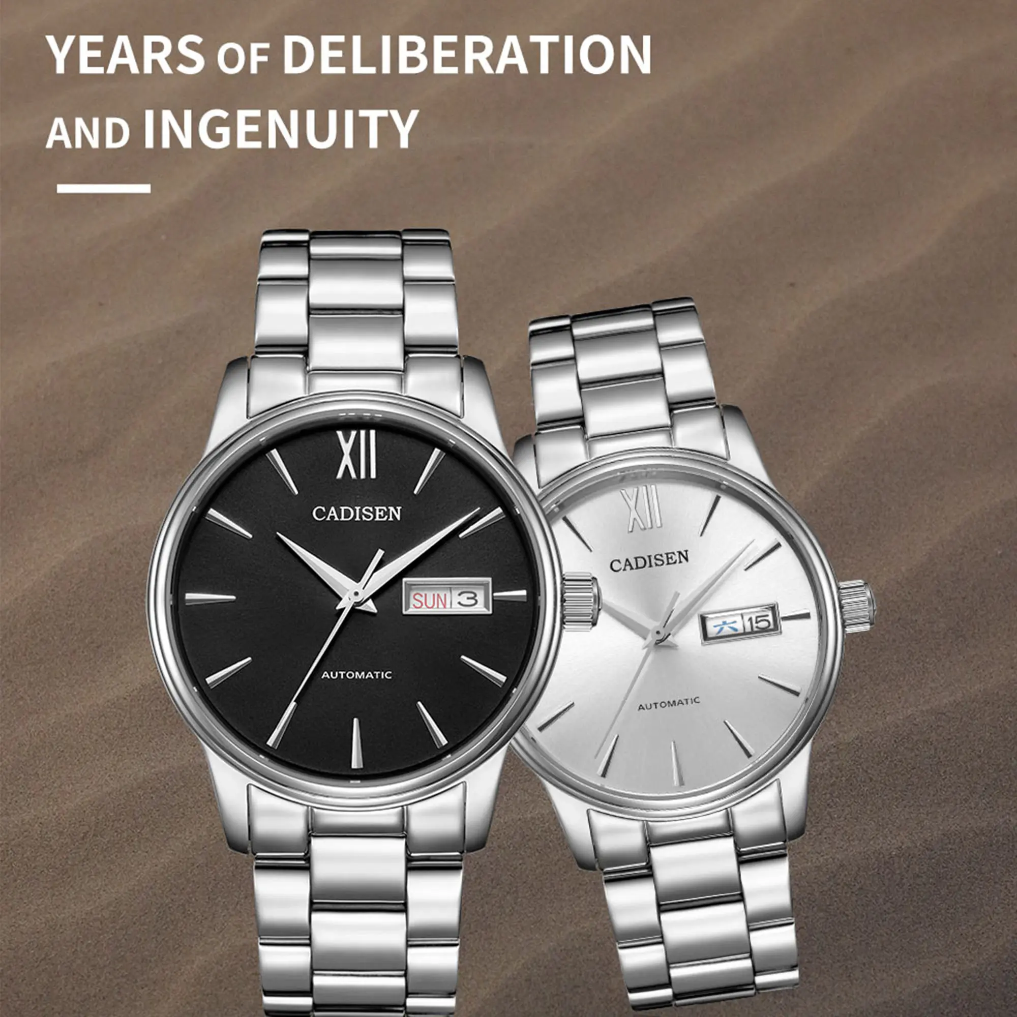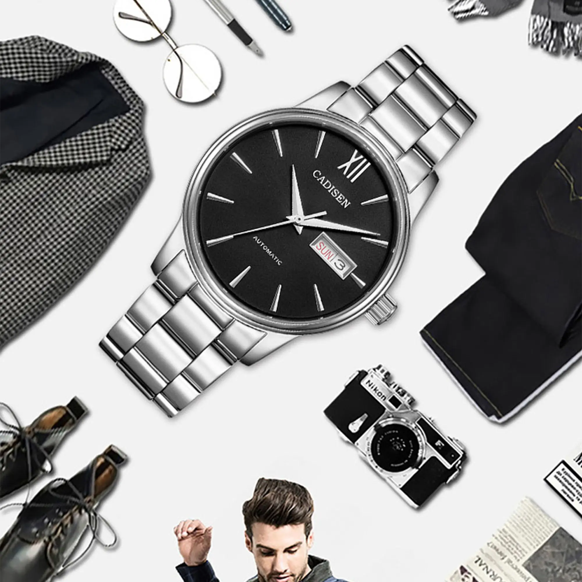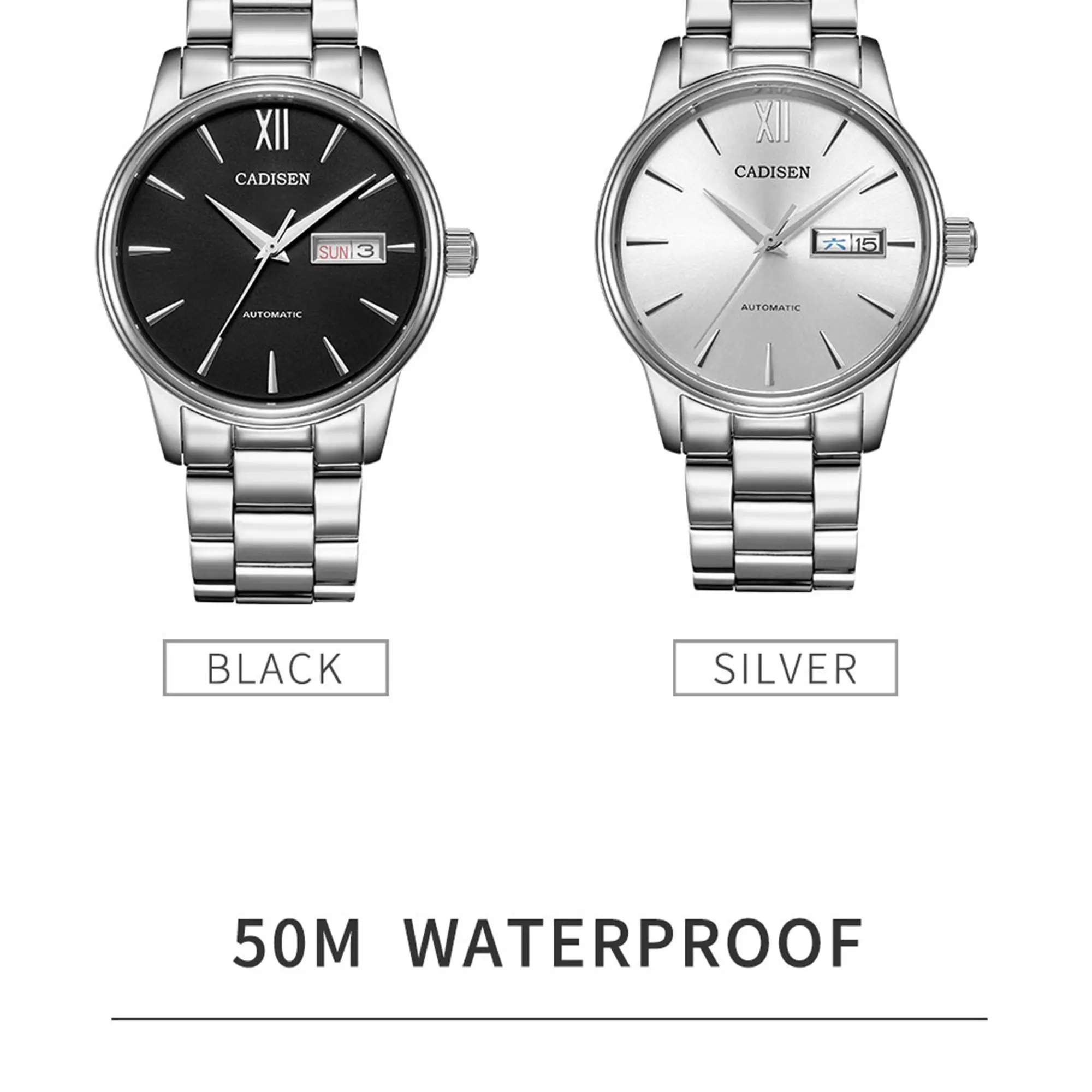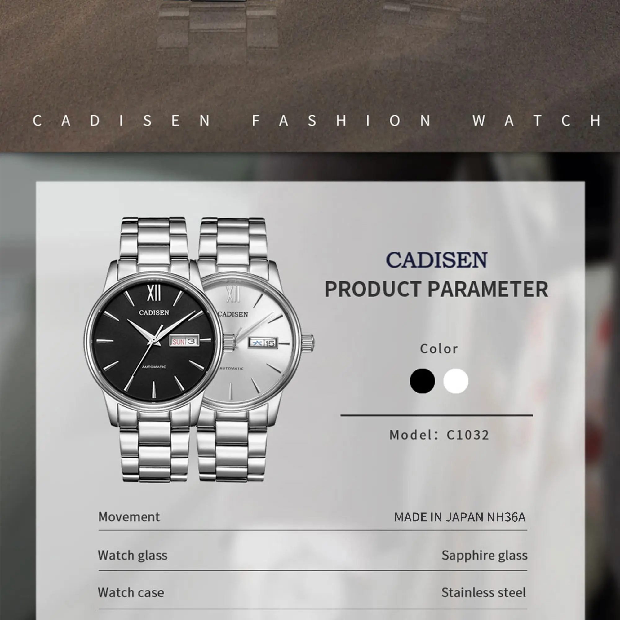 CADISEN Watch Men NH36A Mechanical movement Set Automatic Self-wind Stainless Steel 5ATM Waterproof Business Men WristWatch