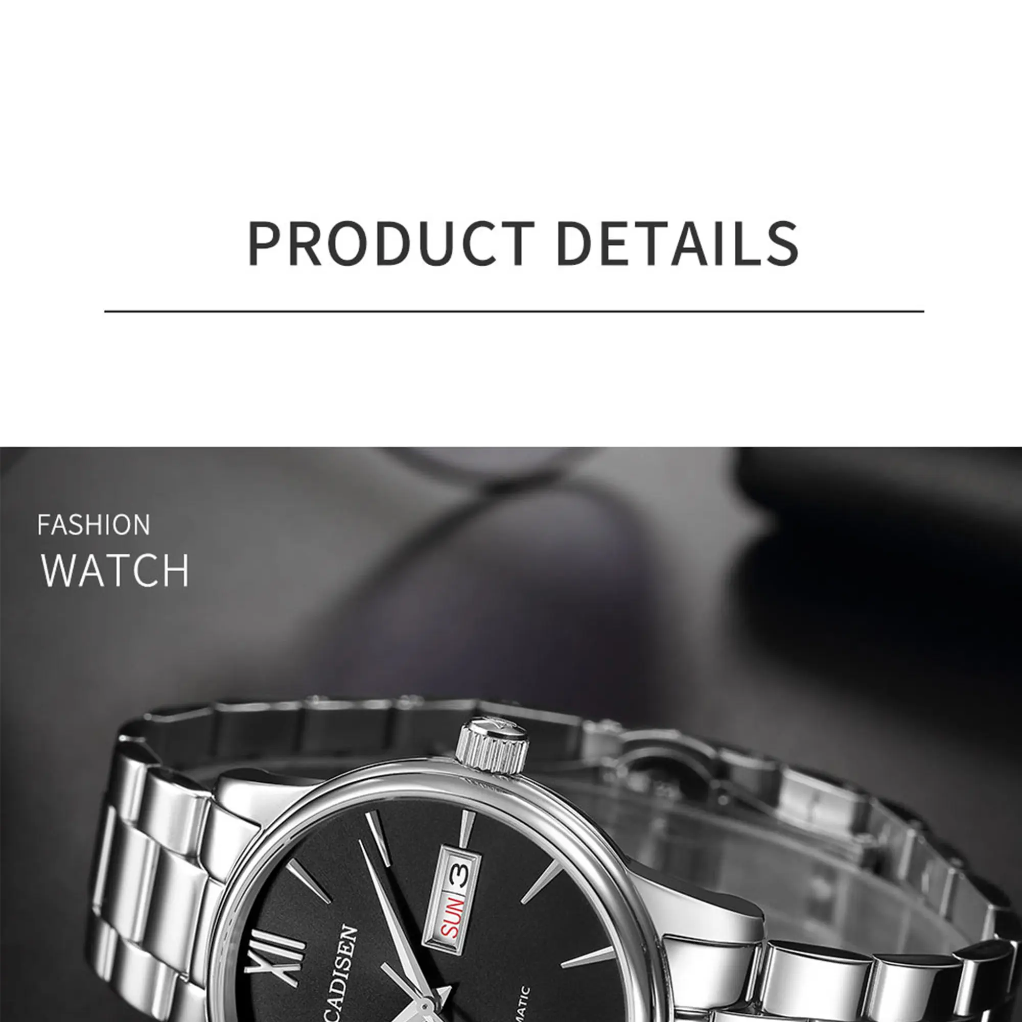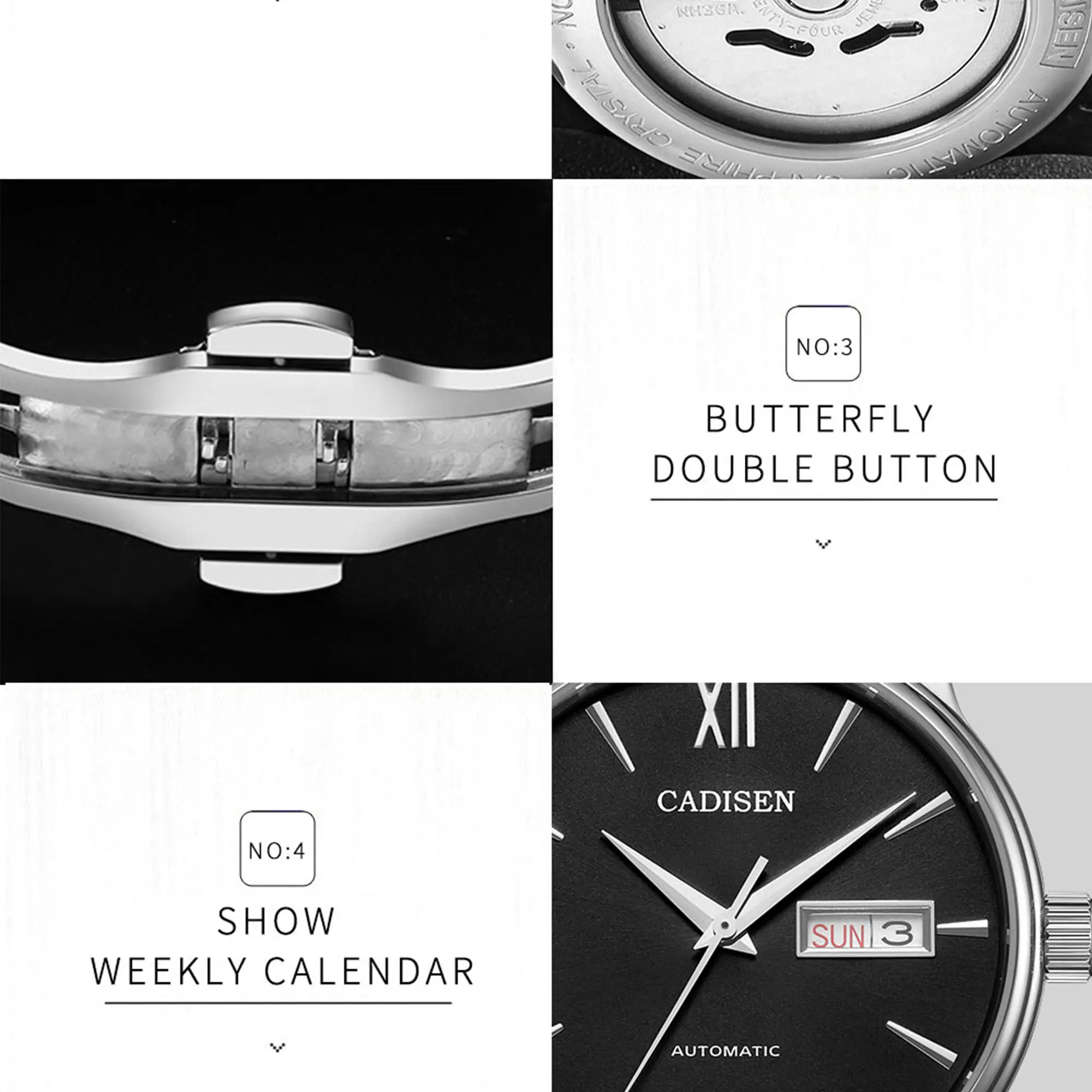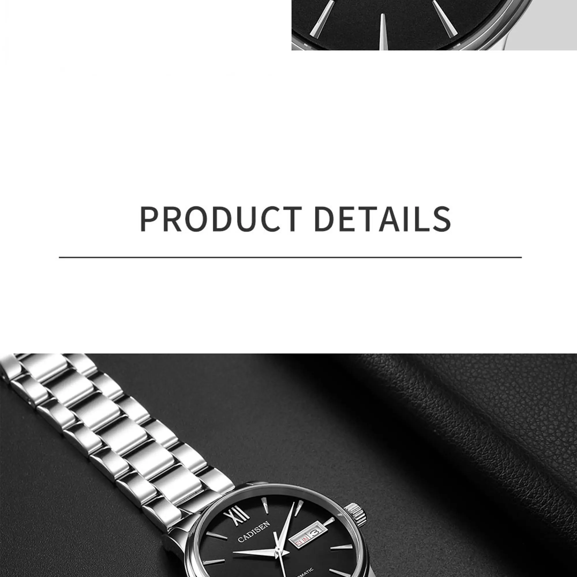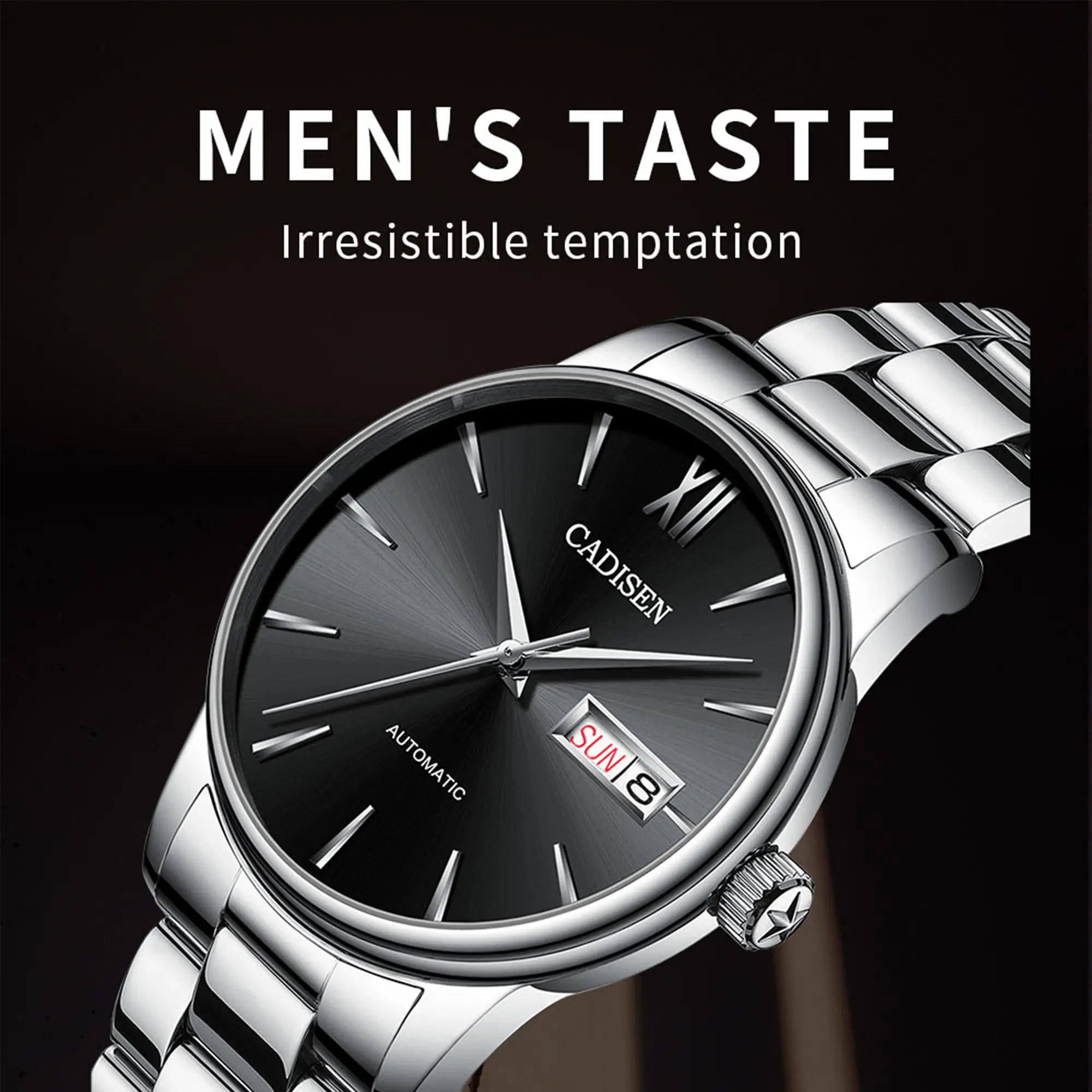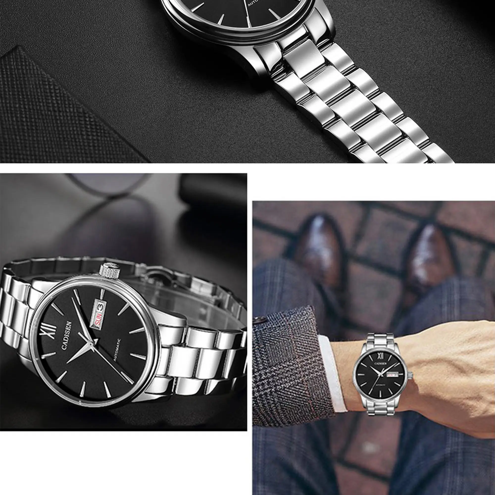 CADISEN Watch Men NH36A Mechanical movement Set Automatic Self-wind Stainless Steel 5ATM Waterproof Business Men WristWatch