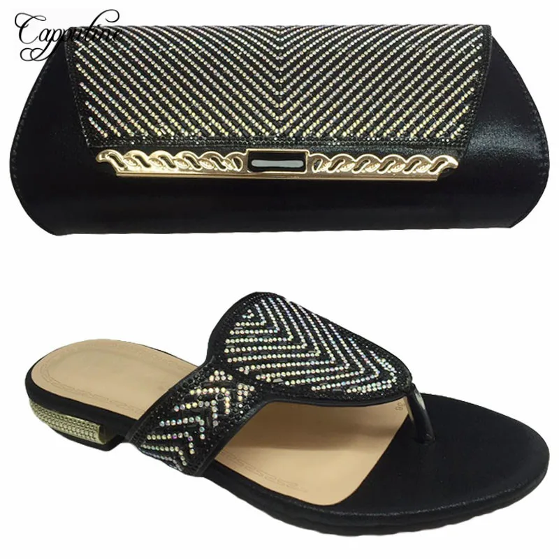 Capputine Hot Selling Italian Pumps Party Shoes And Bags To Match Set Nigerian Party Black Shoes and Bag Sets 5Colors Stock